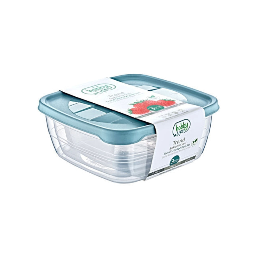مجموعة صناديق تخزين عملية مكونة من 3 قطع من مجموعة Trend Trend ، وتضم حاويات مربعة الشكل بثلاثة أحجام مختلفة: 0.9 لتر و 1.5 لتر و 2.5 لتر. هذه الصناديق الشفافة مصنوعة من بلاستيك متين وآمن للاستخدام الغذائي، وهي مثالية لتخزين المواد الجافة أو بقايا الطعام أو الأطعمة الطازجة مع الحفاظ على تنظيم مطبخك.