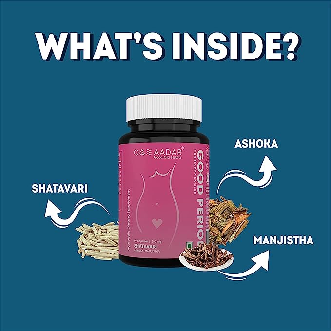 AADAR Good Period for Hormone Balance, PCOS, Period Stress Relief and Mood Swings - 60 Capsules (Pack of 3)