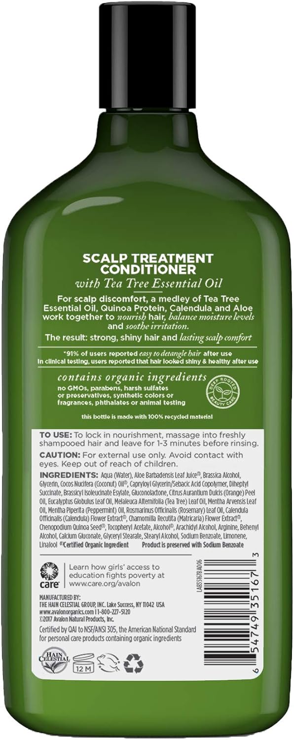 بعد غسل الشعر بالشامبو، ضعي البلسم على الشعر وفروة الرأس. اتركيه لمدة 1-3 دقائق، ثم اشطفيه جيدًا. للحصول على أفضل النتائج، استخدميه مع شامبو Avalon Organics Scalp Treatment Tea Tree Shampoo.