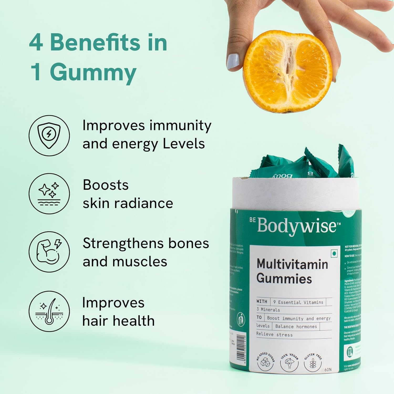 بي بوديوايز متعدد الفيتامينات جاميز | عبوة تكفي 60 يومًا | يحتوي على الألياف والزنك والحديد والبيوتين | فيتامين D3 و B6 و E و A | يعزز الطاقة والقدرة على التحمل ويحسن المناعة وصحة البشرة | نباتي وخالٍ من الجلوتين والجيلاتين