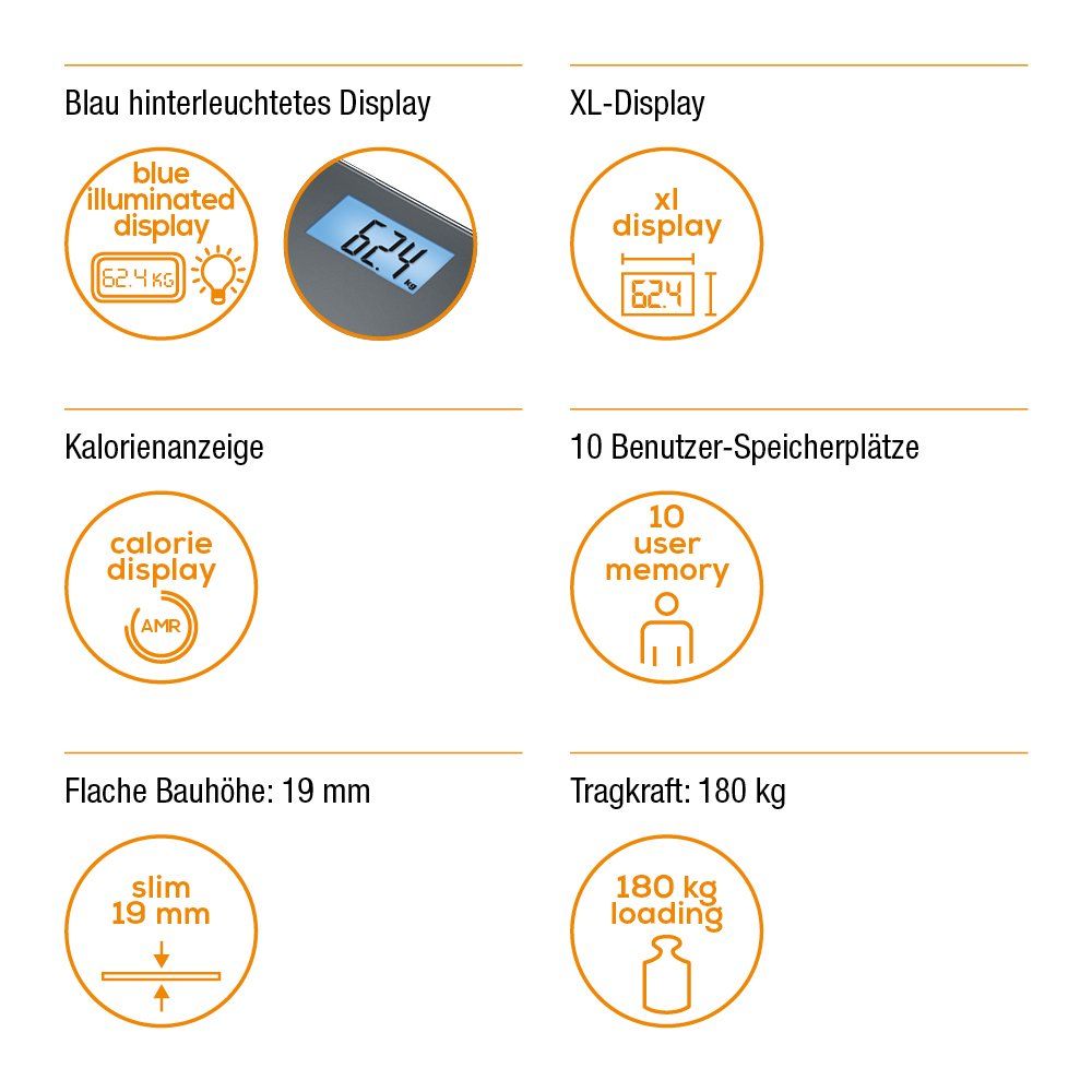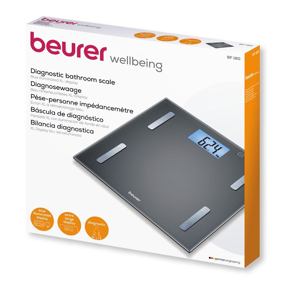 ميزان الحمام التشخيصي الأنيق بشاشة زرقاء مضيئة وسعة وزن تصل إلى 180 كجم هو الإكسسوار المثالي لحمامك.