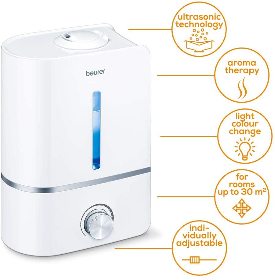 مرطب الهواء BEURER LB45 مع رذاذ بالموجات فوق الصوتية | مع وظيفة العطر | مناسب للغرف حتى 30 متر مربع | تشغيل هادئ