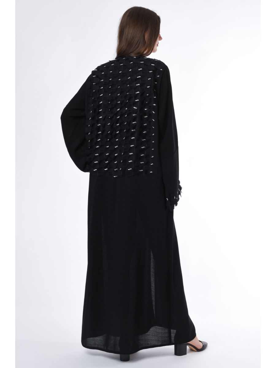 MOiSTREET عباءة سوداء مع أجزاء مربعة على الظهر والأكمام