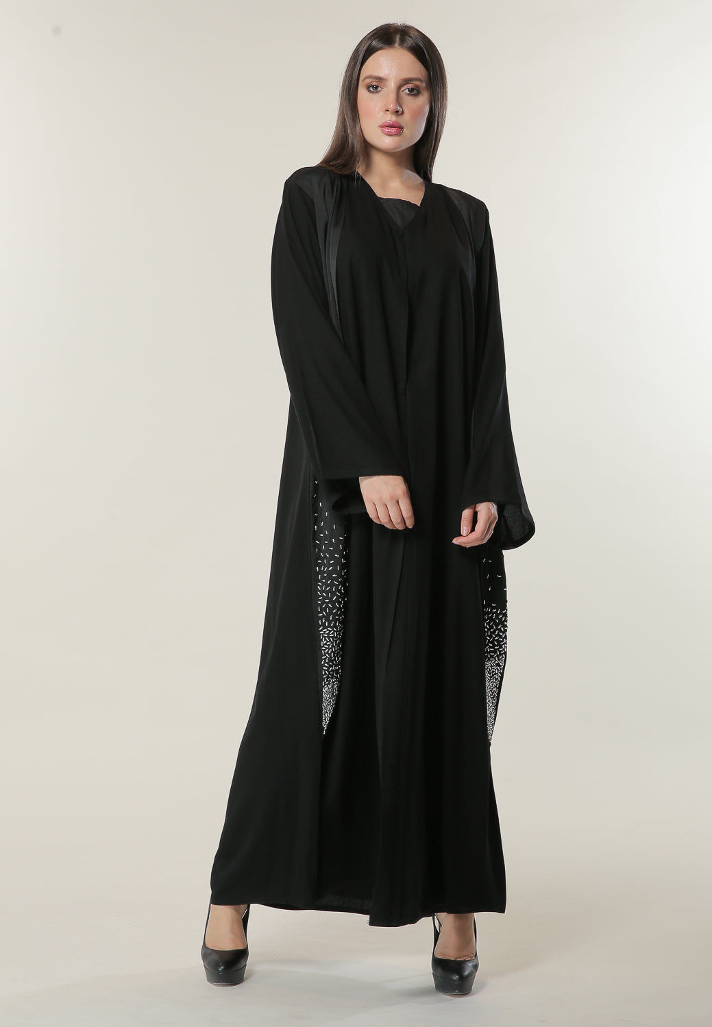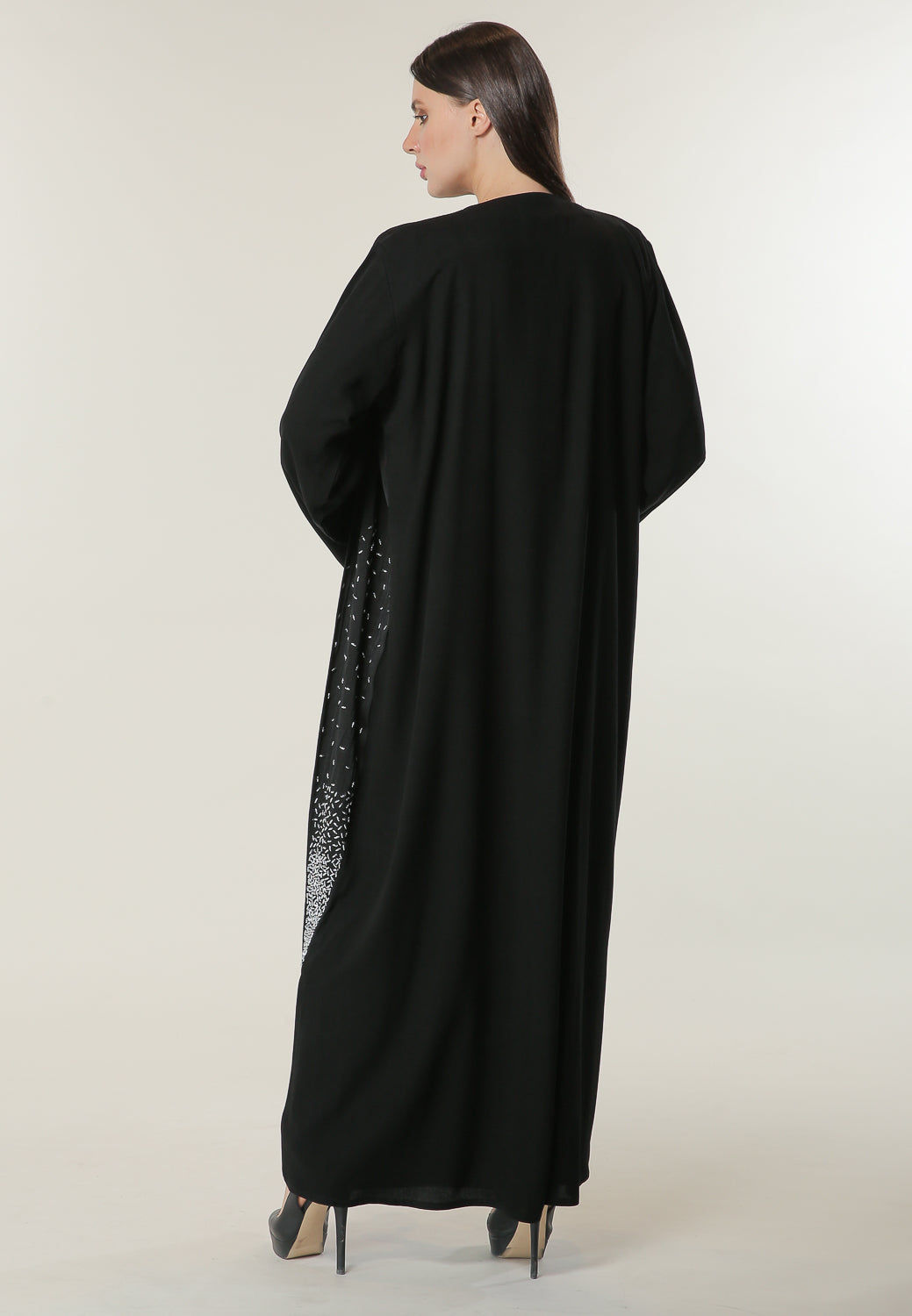 MOiSTREET عباءة سوداء مع زخرفة يدوية على لوحين متماثلين