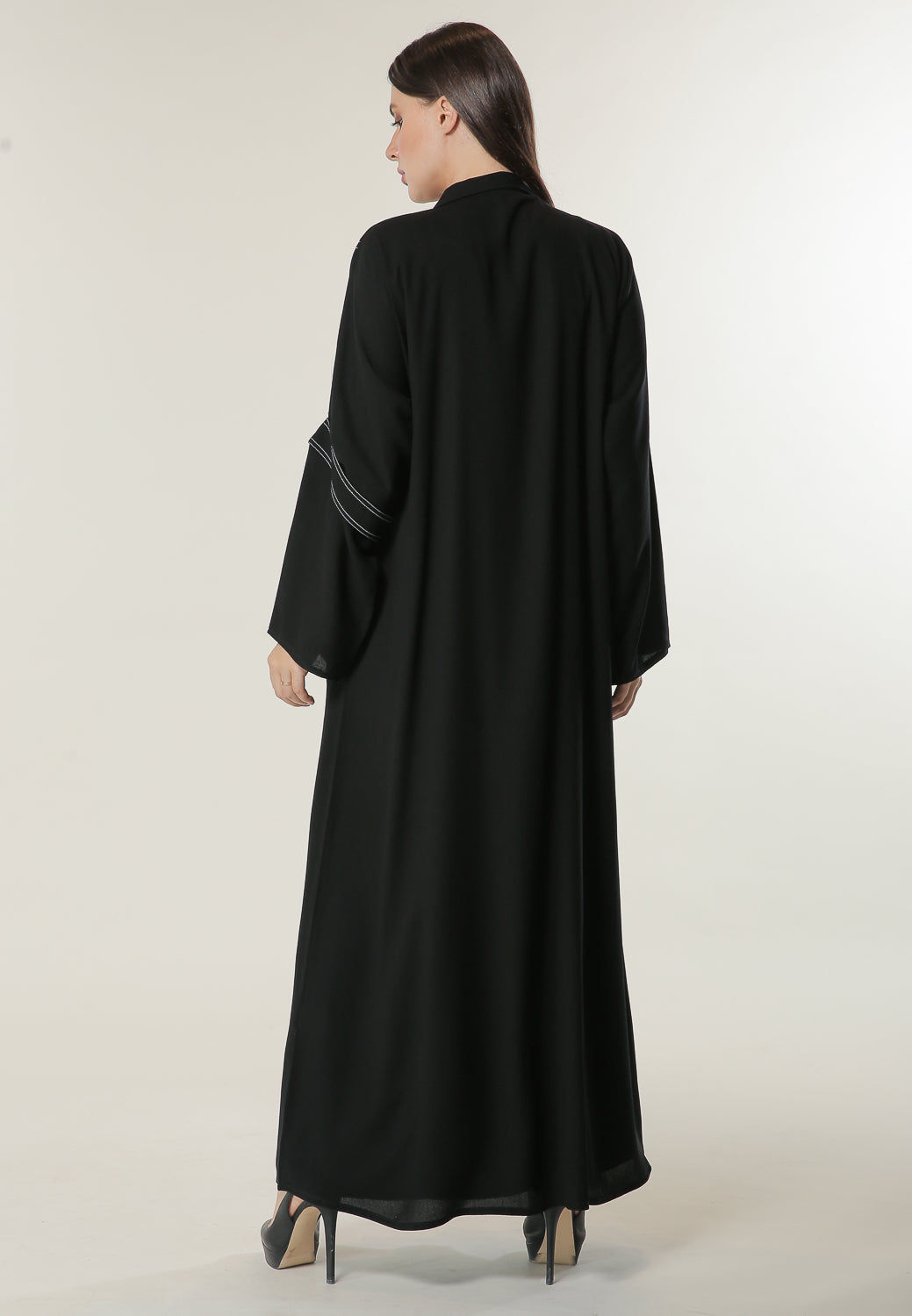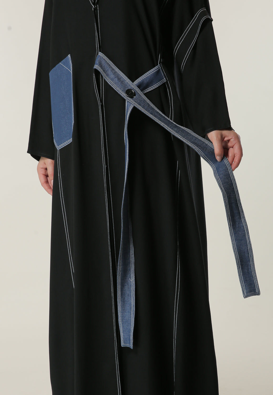 MOiSTREET عباءة سوداء غير رسمية مع جيب من الدنيم وحزام مزخرف