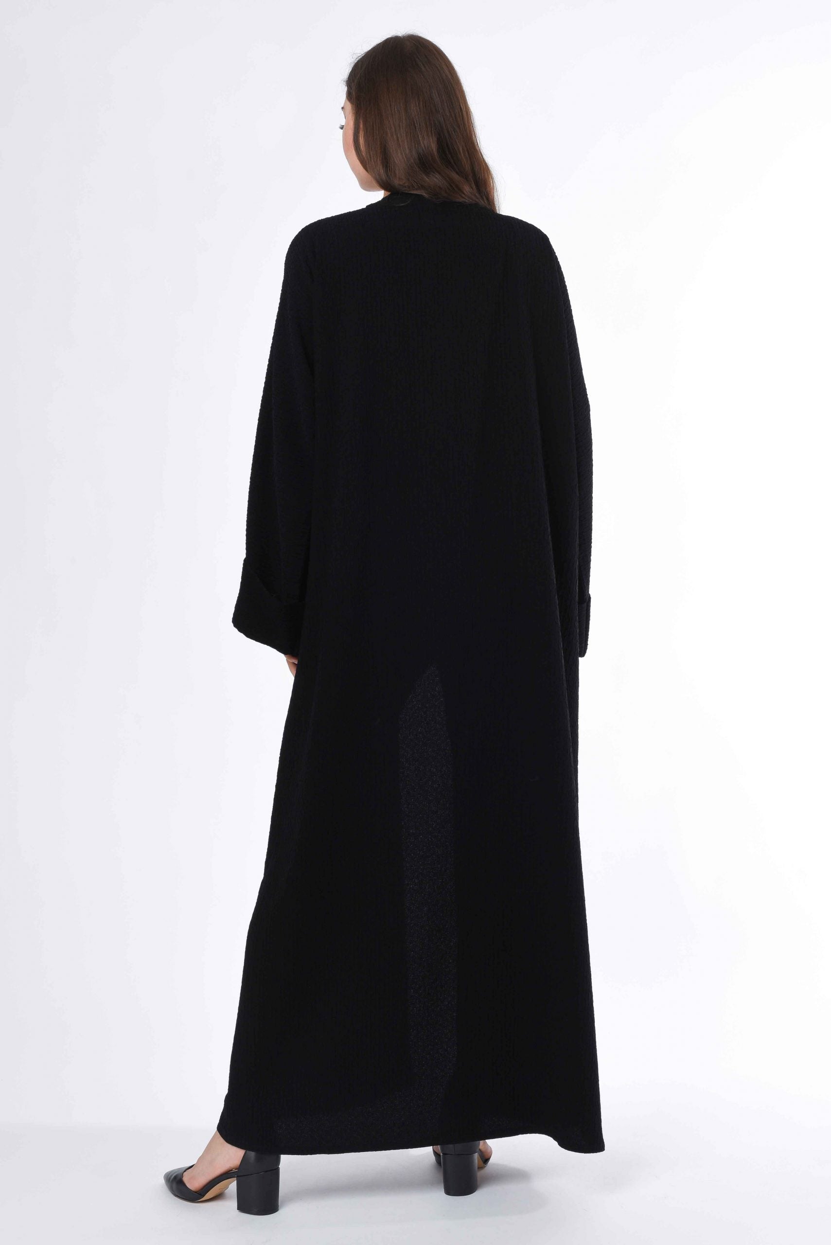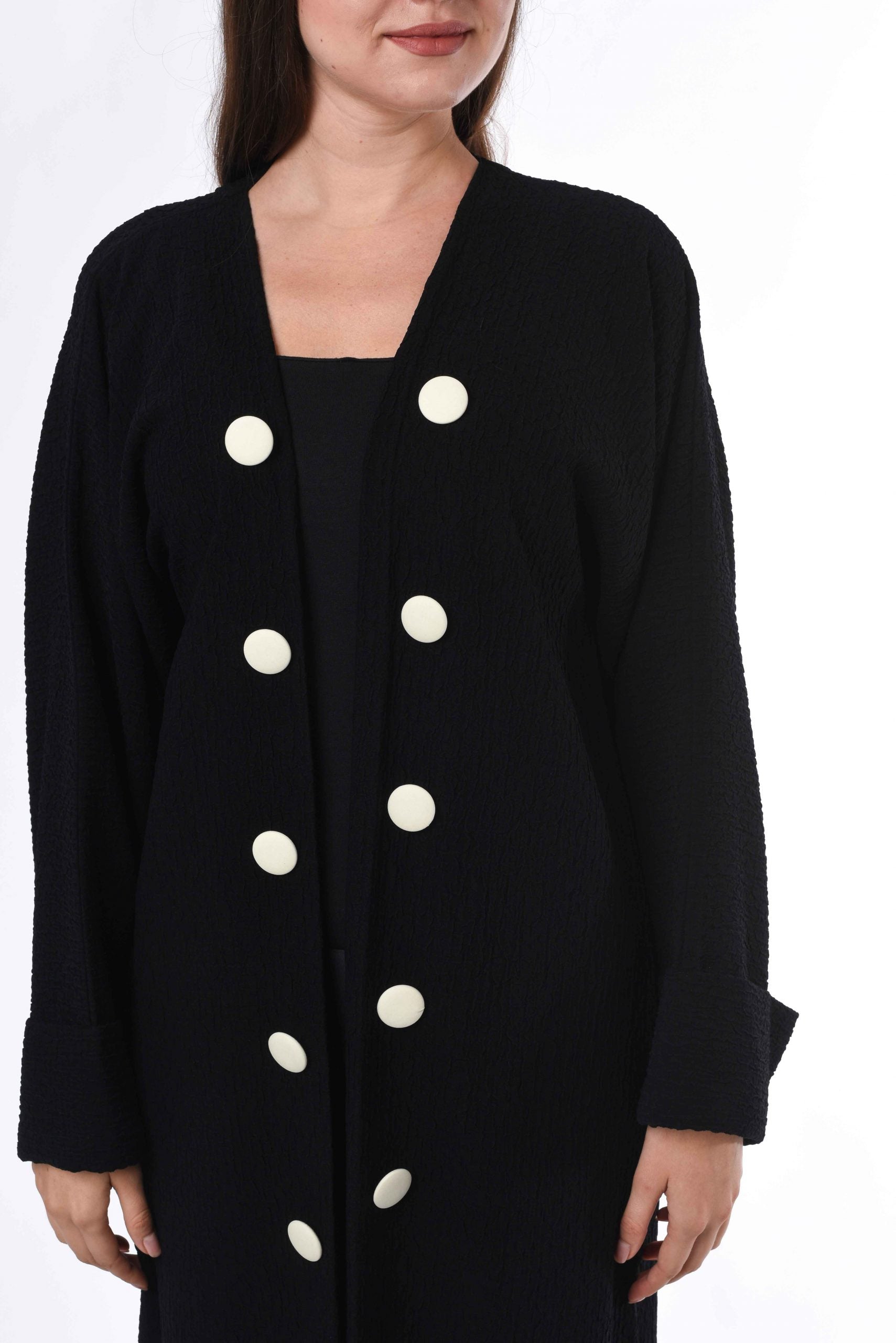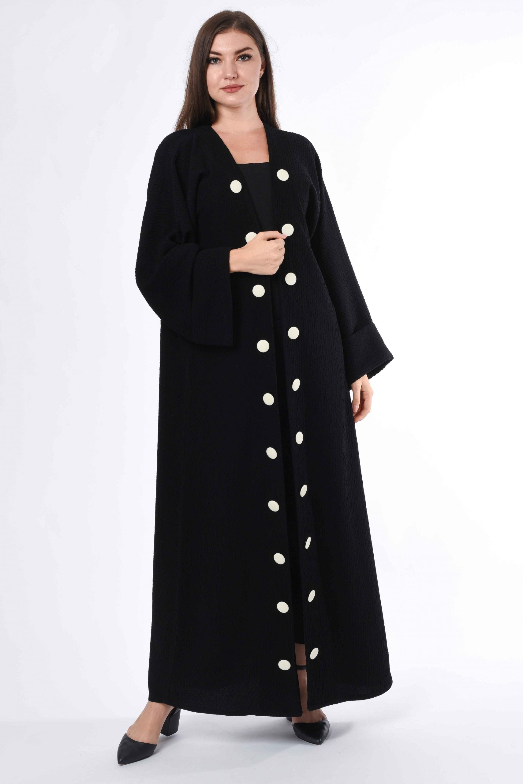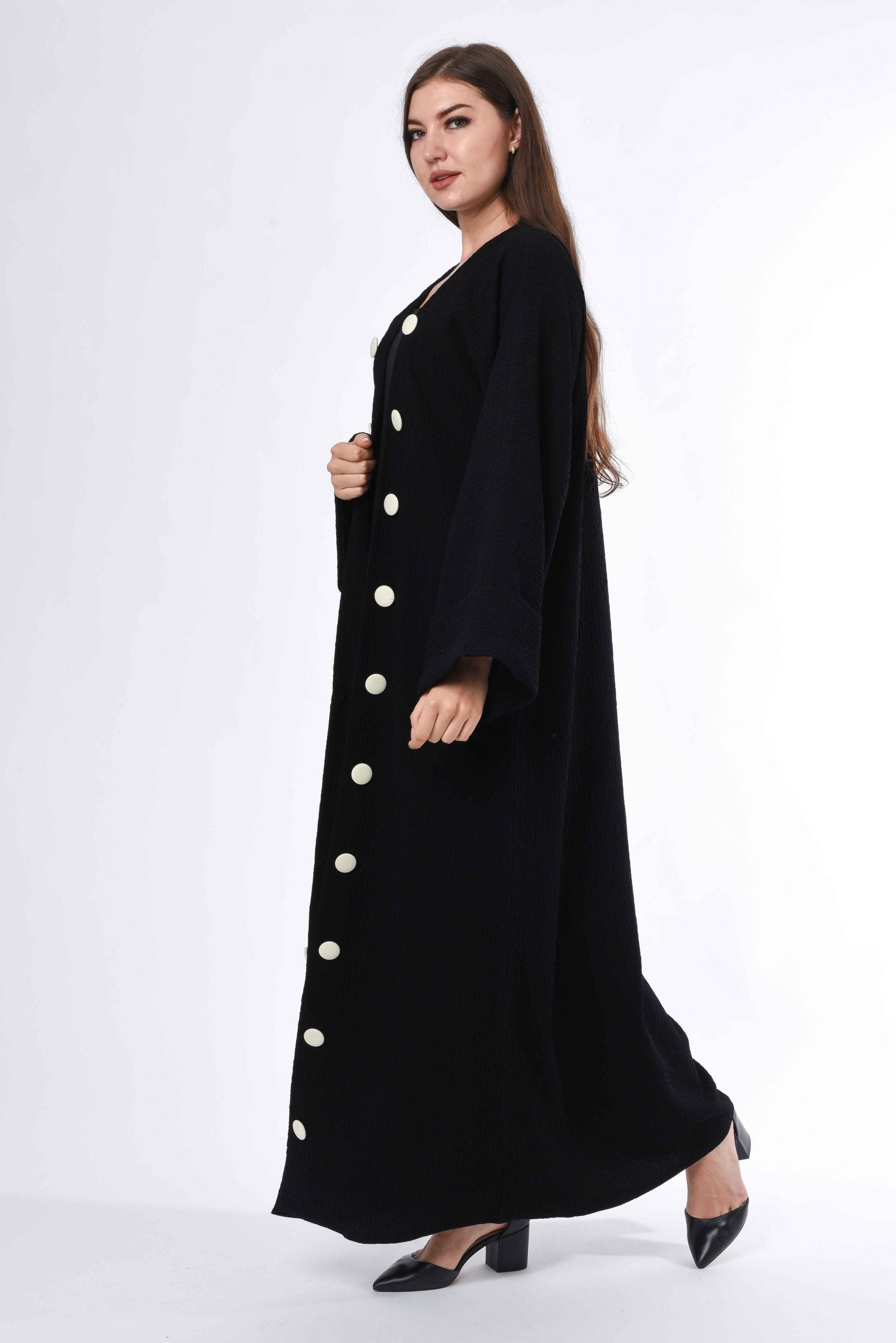 عباءة سوداء من MOiSTREET بتفاصيل أزرار بيضاء