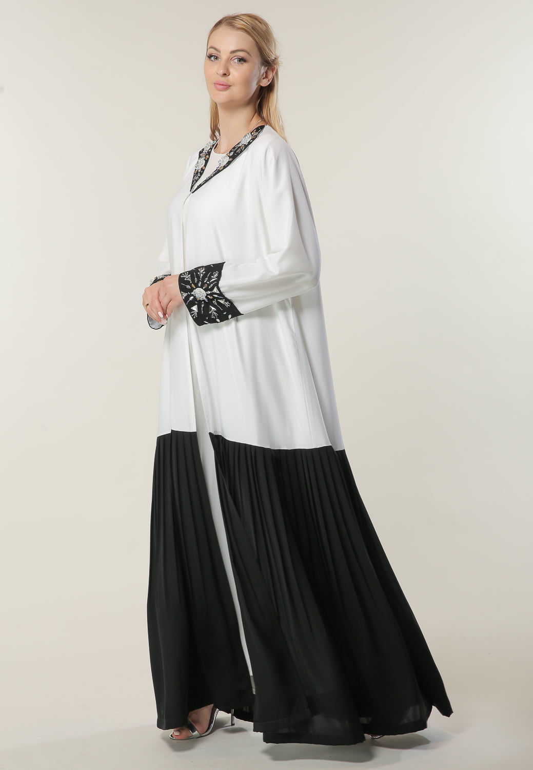 MOiSTREET عباءة سوداء وبيضاء مطرزة يدويًا