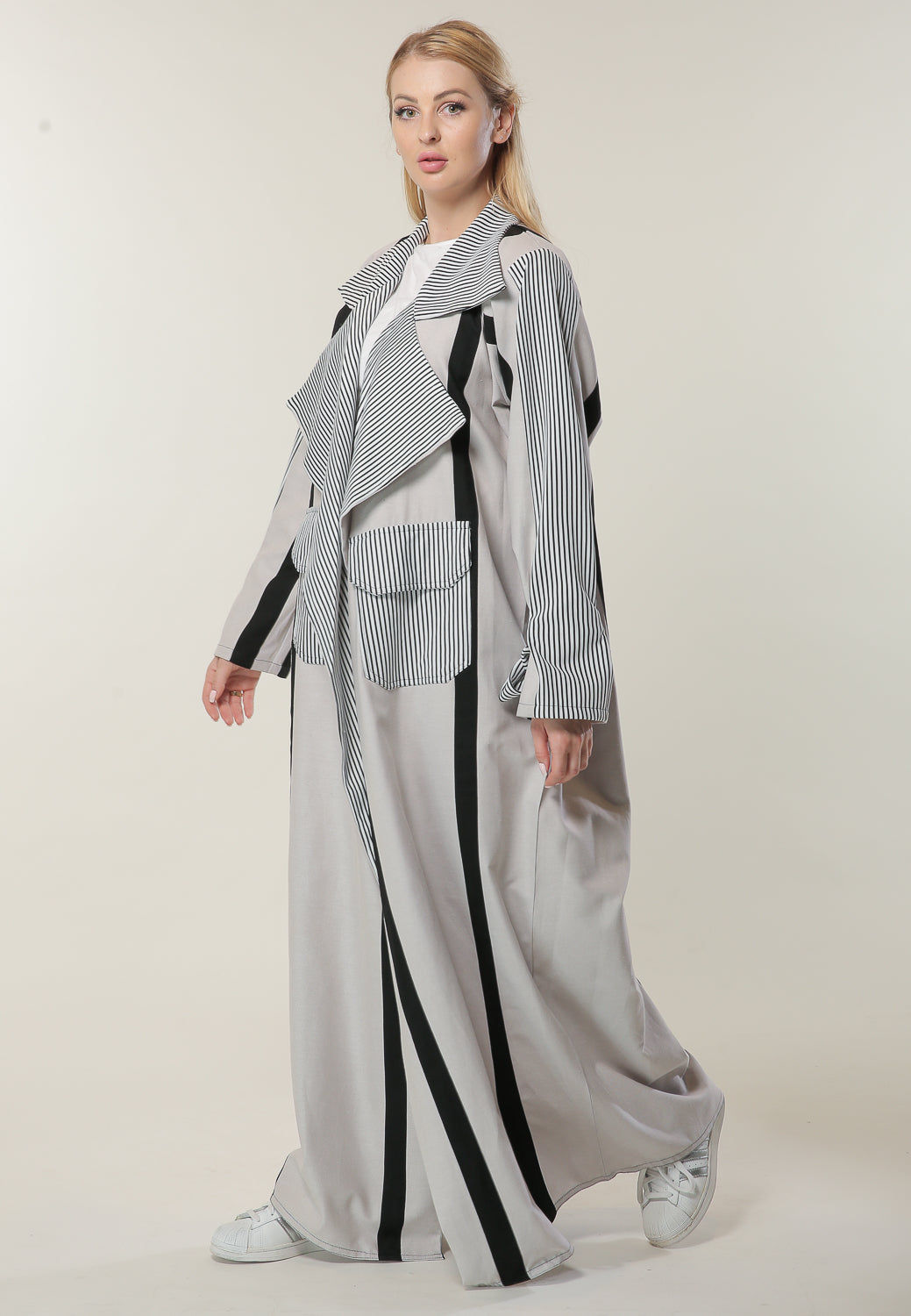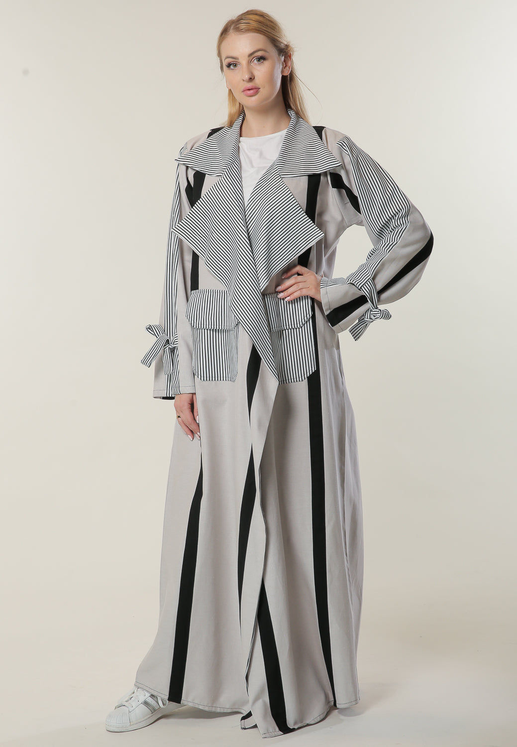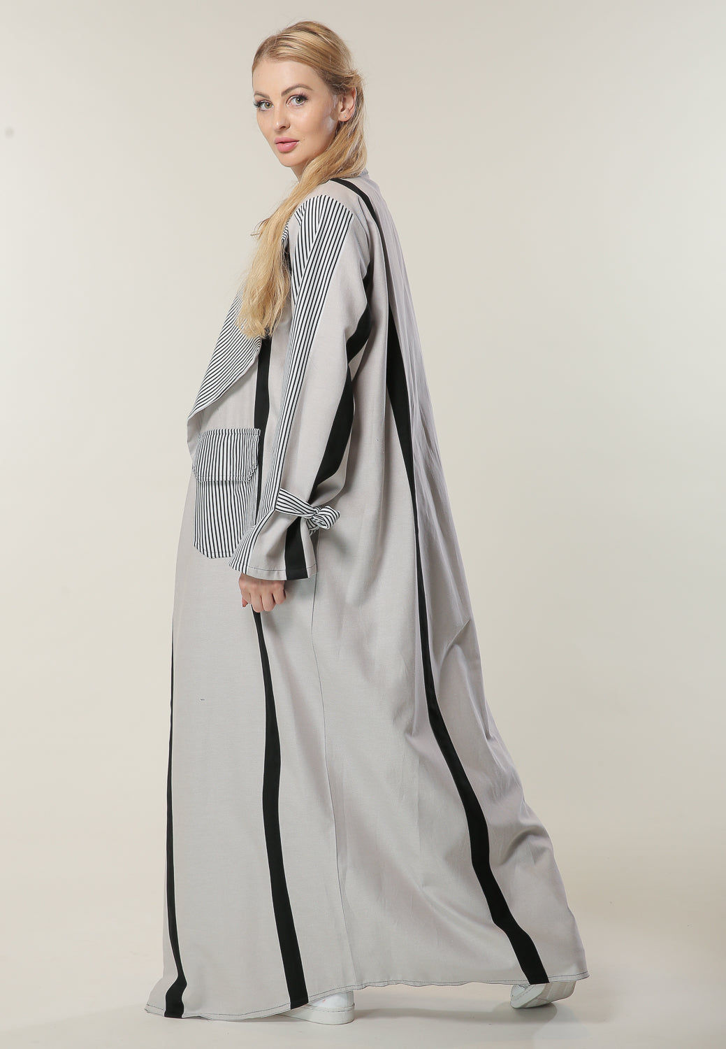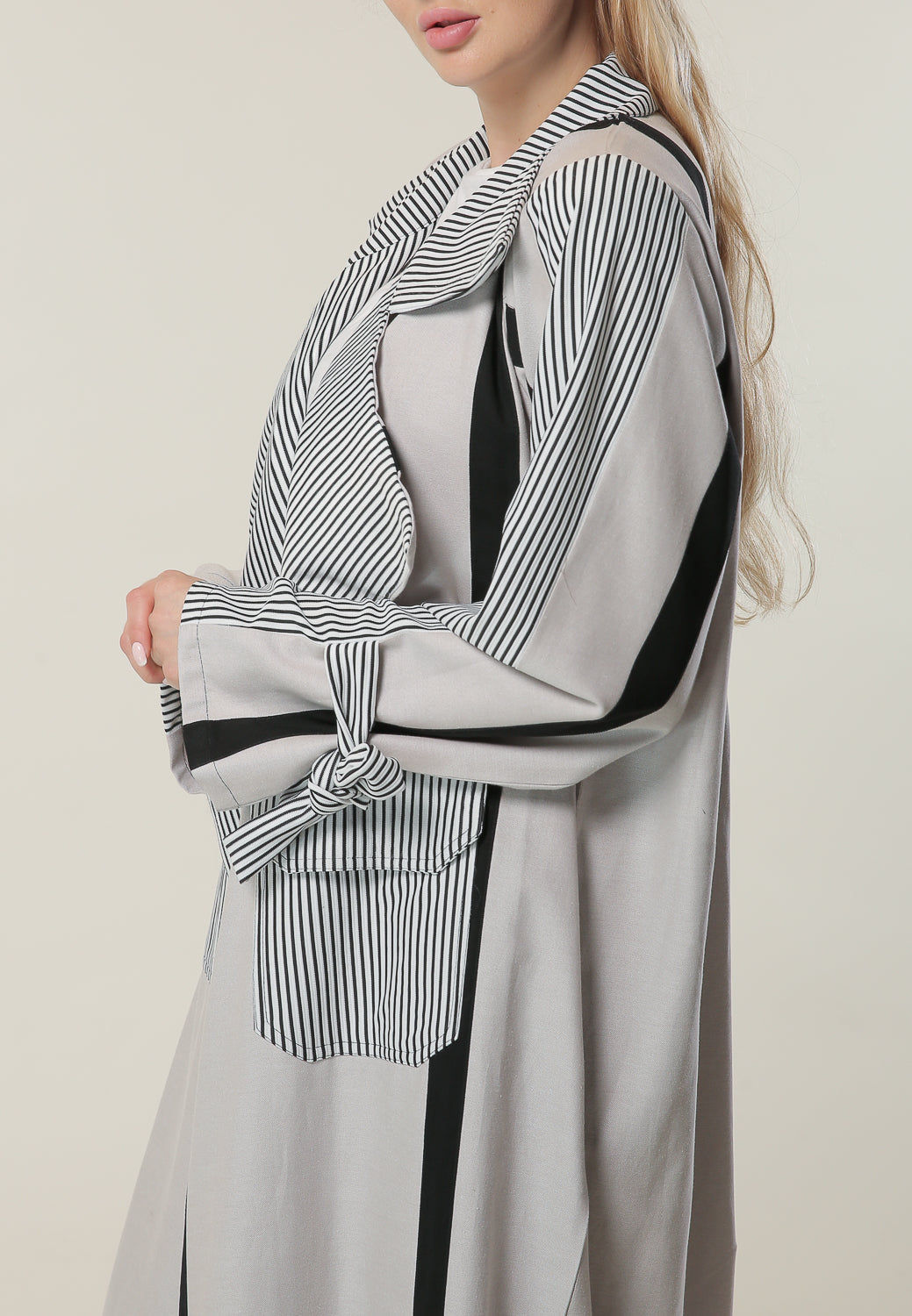MOiSTREET عباءة كاجوال بخطوط سوداء وبيضاء