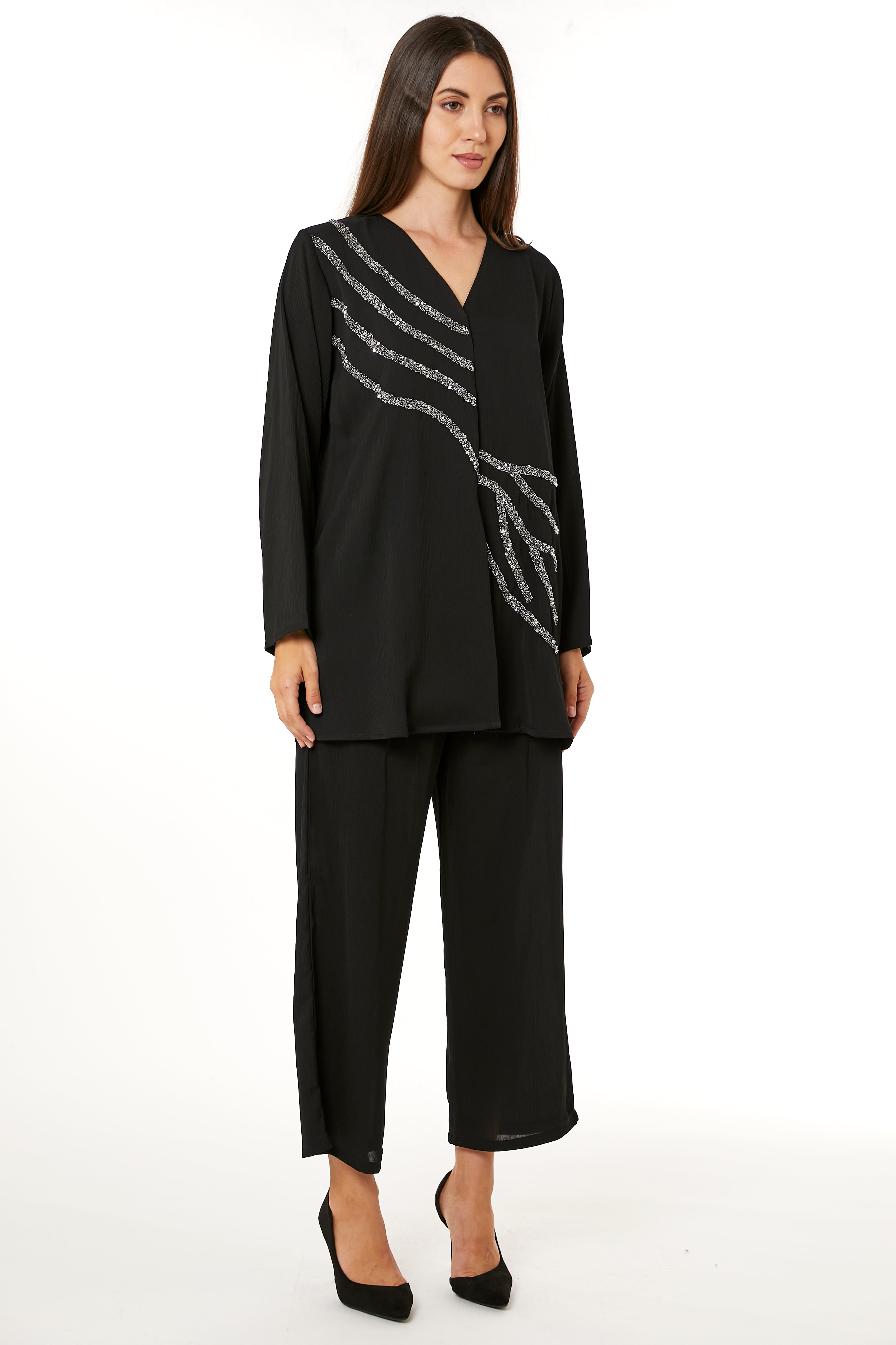 مجموعة قميص وبنطال أسود من MOiSTREET