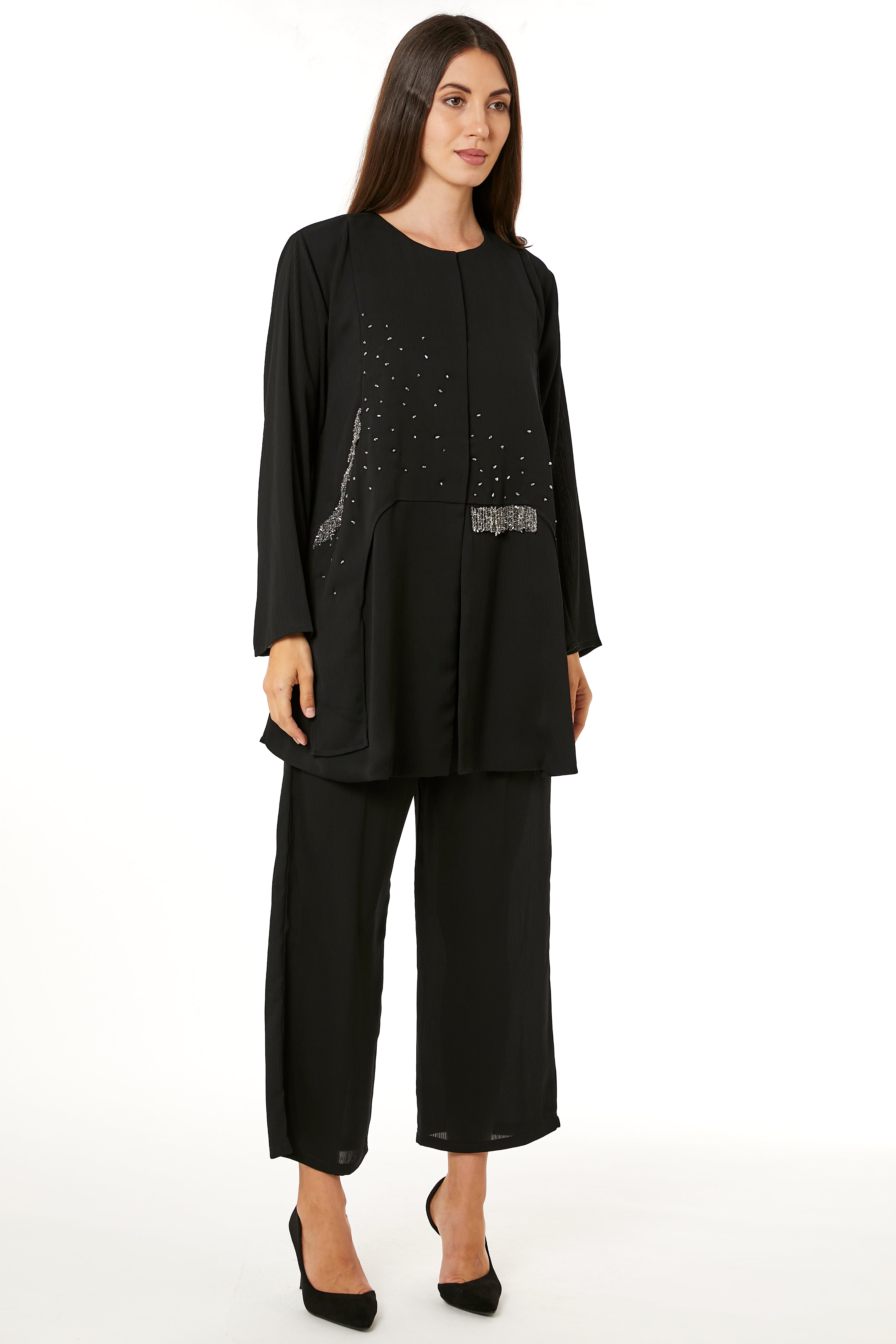 MOiSTREET طقم سفر من بلوزة وسروال أسودين