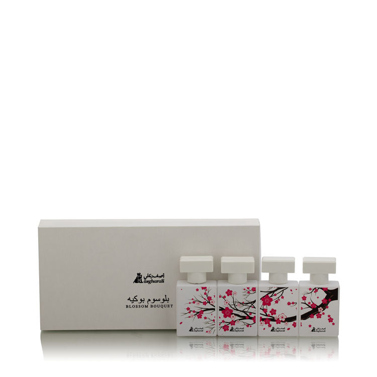 يتم تقديم BLOSSOM BOUQUET في 4 زجاجات مصغرة ساحرة تحتوي على 10 مل من العطر العطري BERRY MELLOW، وهو مزيج من العطور الخشبية الحارة. SPRINGTIME SUN هو عطر خالد، العطر المثالي الذي يميزك، يستمد من عطر الفانيليا الشرقية اللاشعوري BOOMFIELDS الذي ينشط على الفور، مع روائح خشبية حارة تبرز قوة ورشاقة الشخصية المذهلة مع خشب الصندل ونجيل الهند. LUSH SEASON، القطعة الأخيرة من المجموعة، تنبعث منها رائحة خشبية حارة غنية، تتنفس برائحة البرغموت والجريب فروت والراوند وقلب خشبي مكثف ورائحة خشبية من العنبر مع نغمات من الخشب والفانيليا. استوحيت عبوة Blossom bouquet من زهرة الكرز اليابانية الموسمية التي يتم الاحتفال بها بشكل رئيسي خلال فصل الربيع.