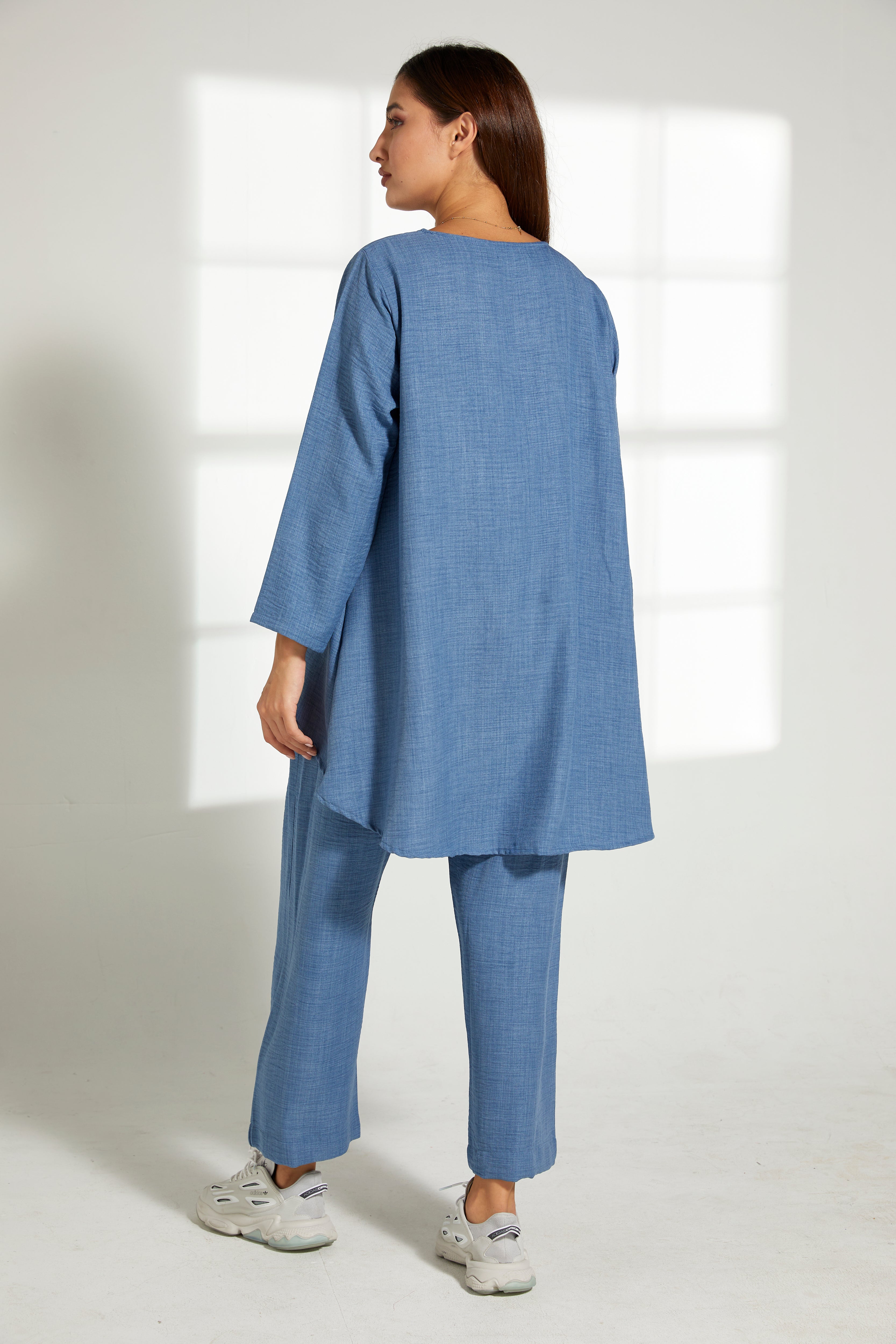 MOiSTREET بلوزة وسروال من قماش ميلانج أزرق CEY