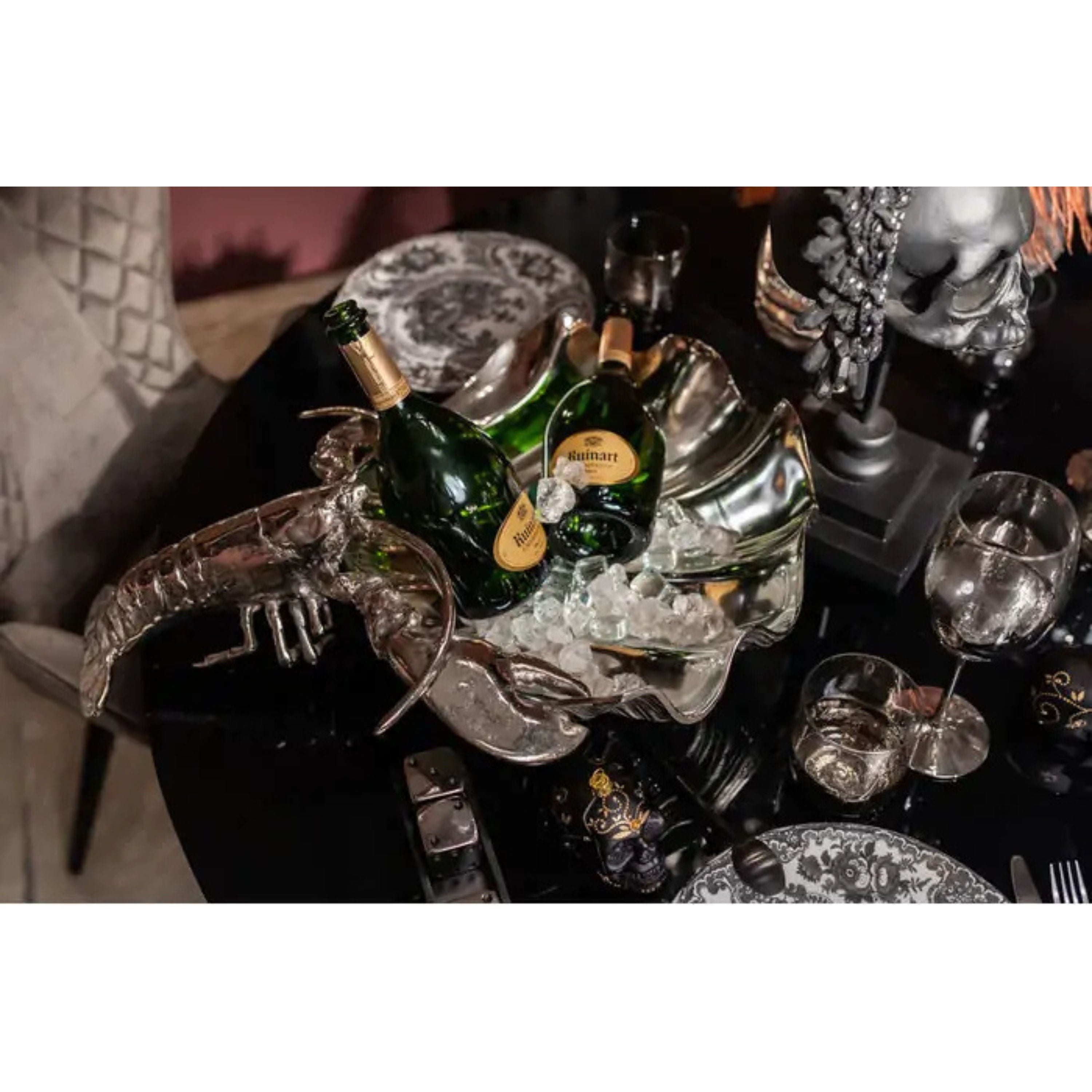 حامل زجاجات على شكل سرطان البحر يخلق جوًا مرحًا ومثيرًا للحوار، مما يجعله مثاليًا للترفيه أو البارات المنزلية أو كمنحوتة زخرفية فريدة. يضفي الألمنيوم المطلي بالنيكل لمعانًا فاخرًا، بينما تضمن التفاصيل المصنوعة يدويًا جودة KARE.