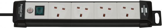 BRENNENSTUHL 1951543101 Premium-Line، سلك تمديد رباعي (مفتاح وكابل بطول 3 أمتار - زاوية المقابس 80 درجة) اللون: أسود / رمادي فاتح