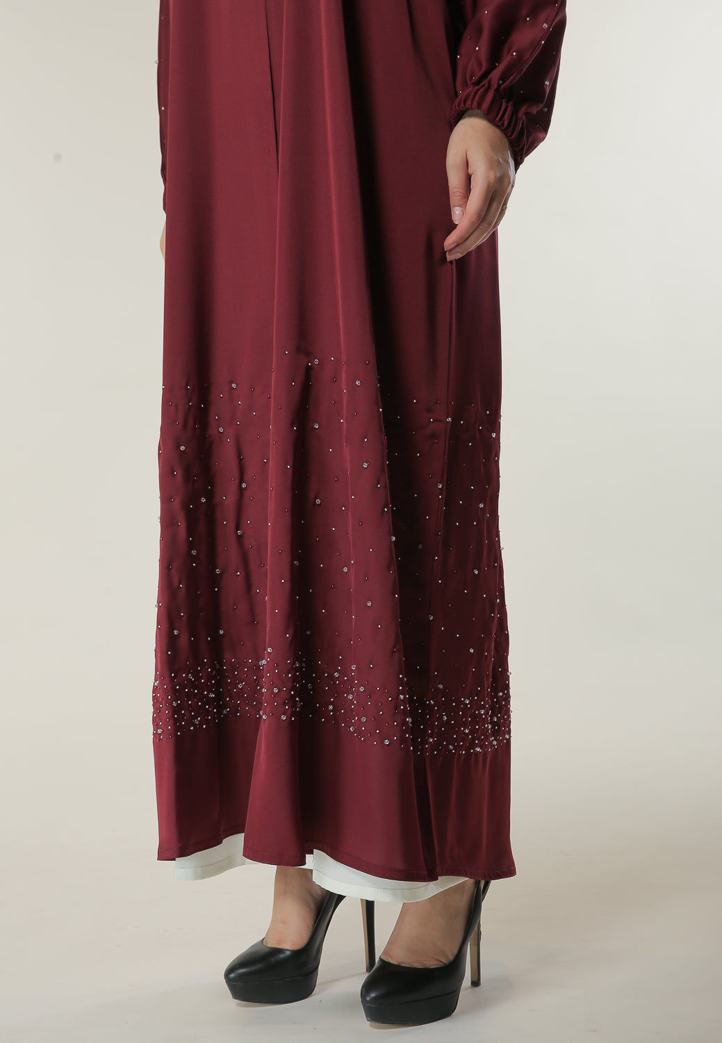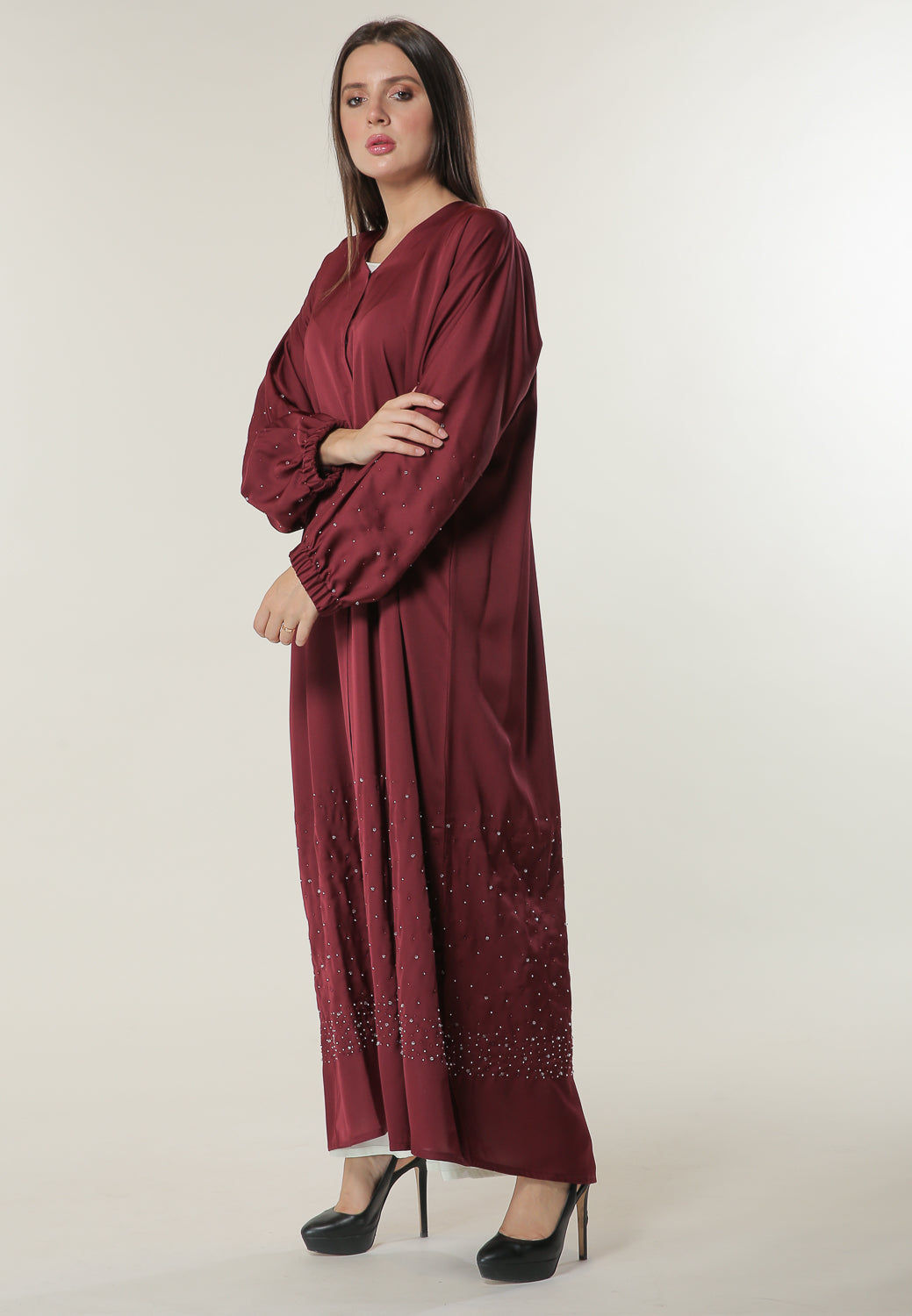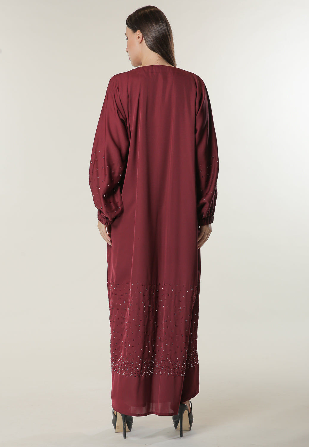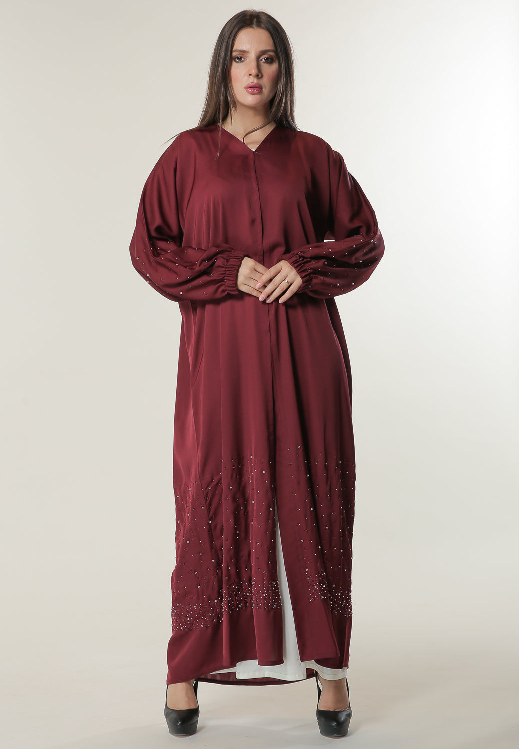 MOiSTREET عباية كرزية مطرزة يدوياً
