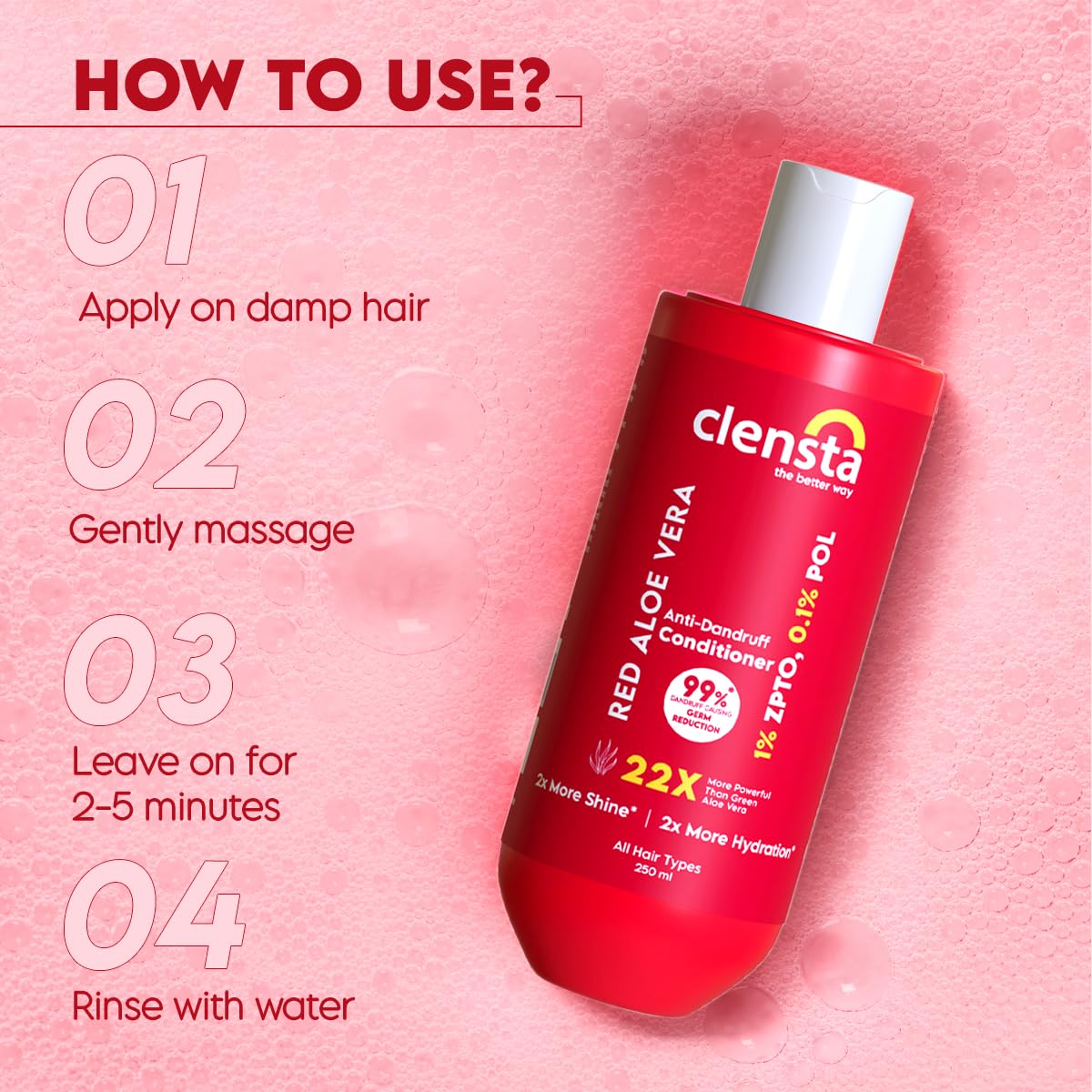 ودّع قشرة الرأس ورحّب بشعر صحي خالٍ من القشرة مع مجموعة شامبو وبلسم كلينستا ريد بالصبار المضادة لقشرة الرأس!