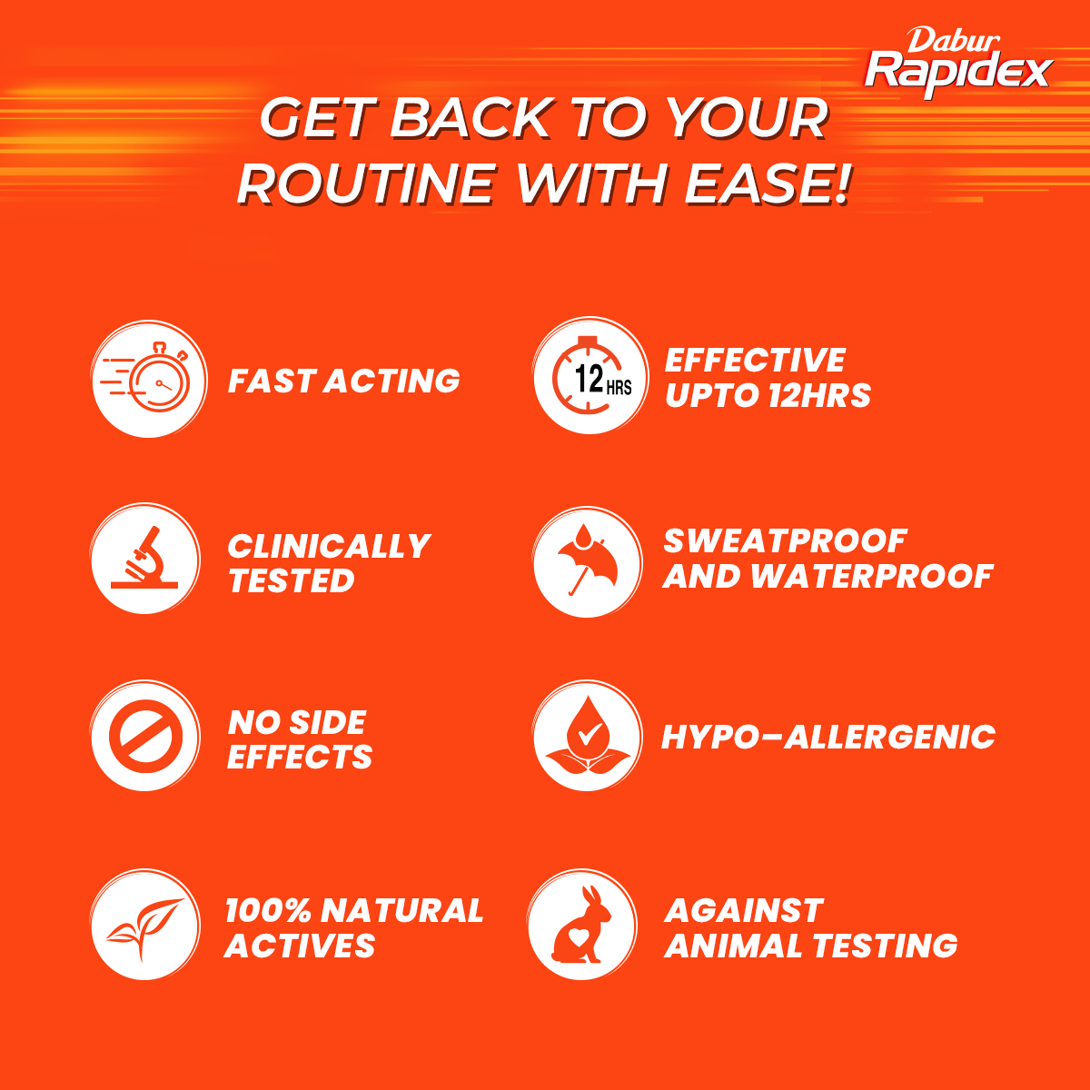 🌿دابور رابيدكس لتخفيف آلامك: مع إضافة اللصقات المخصصة لتخفيف الألم إلى بخاخنا المخصص لتخفيف الألم؛ يأتي دابور رابيدكس لمساعدتك على قضاء يومك براحة تامة، من خلال وسيلة سرية وسهلة الاستخدام لتخفيف الألم مؤقتًا، سواء كان ذلك من آلام العضلات أو الالتواءات أو أي آلام أخرى