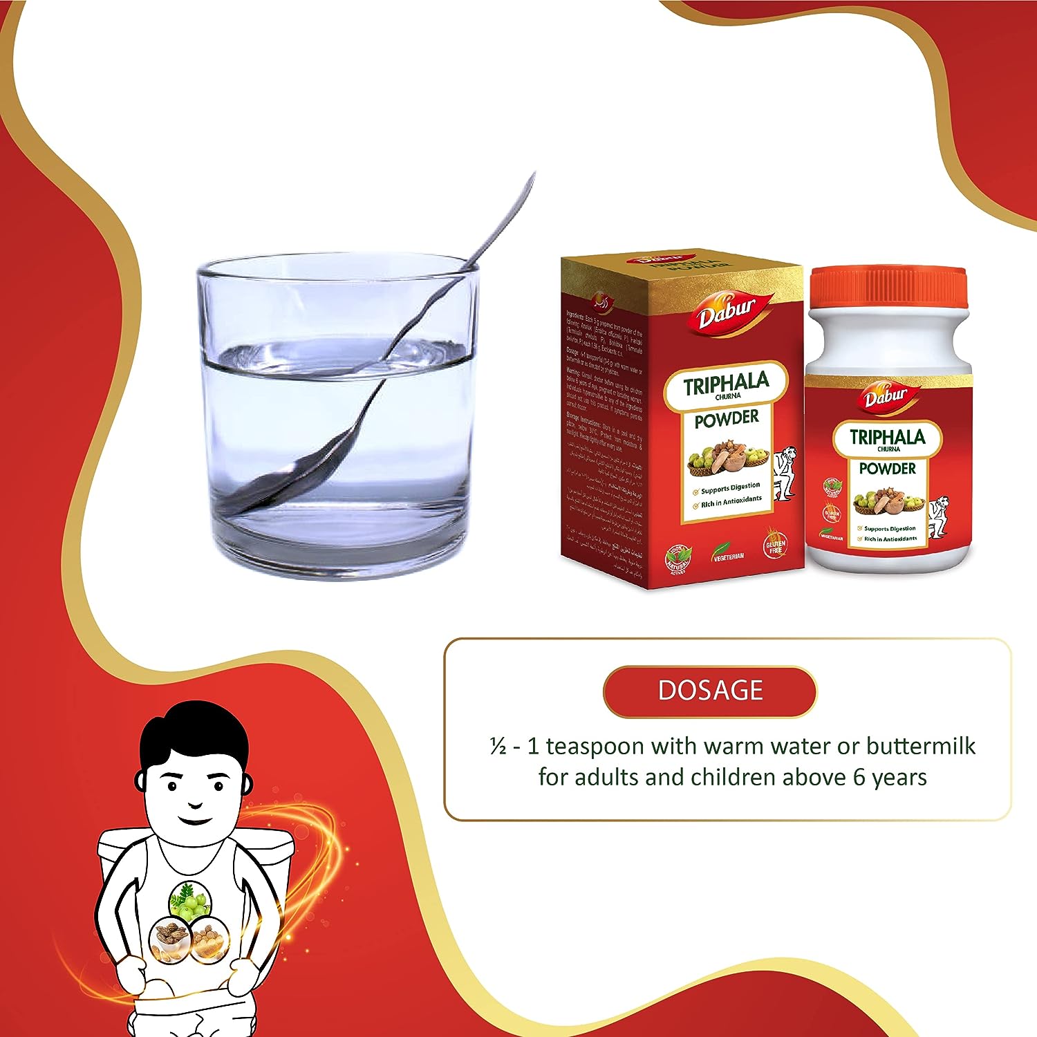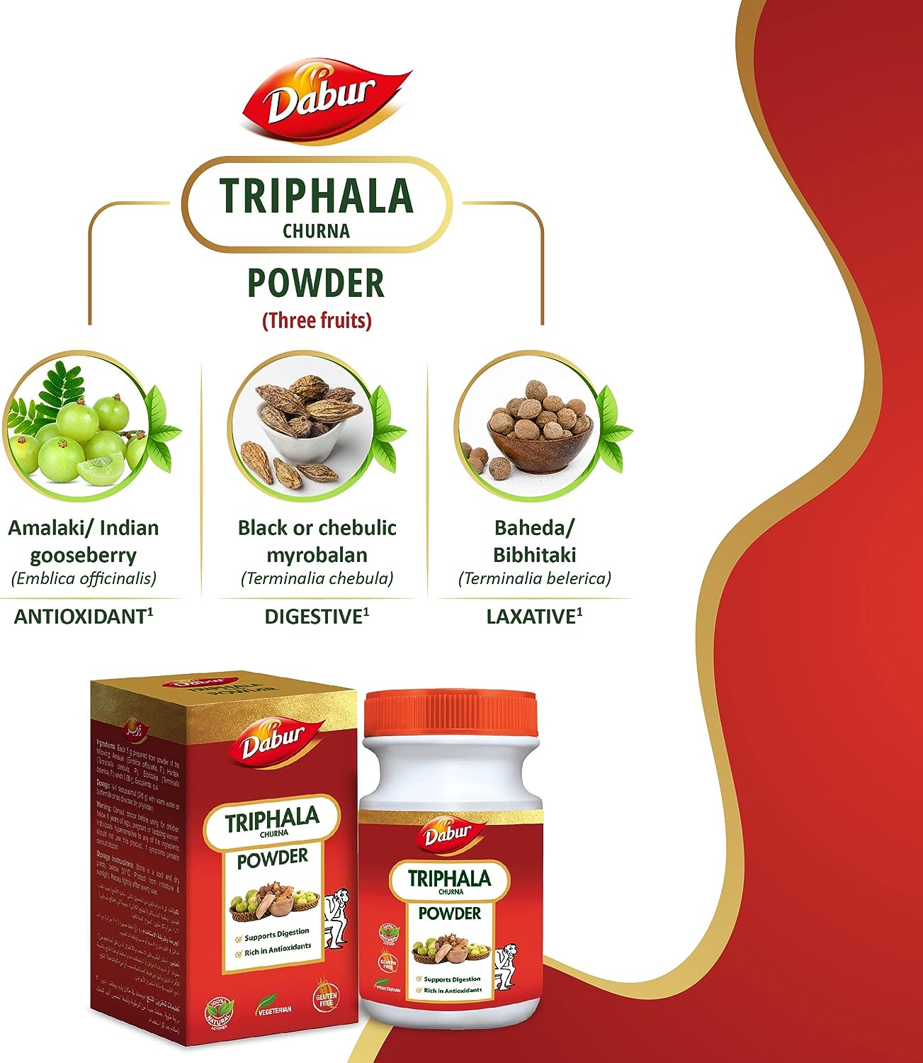 مسحوق دابور تريفالا تشورنا الطبيعي لتخفيف الإمساك | يدعم الهضم الصحي، غني بمضادات الأكسدة ويساعد في التحكم في الوزن - 120 جم