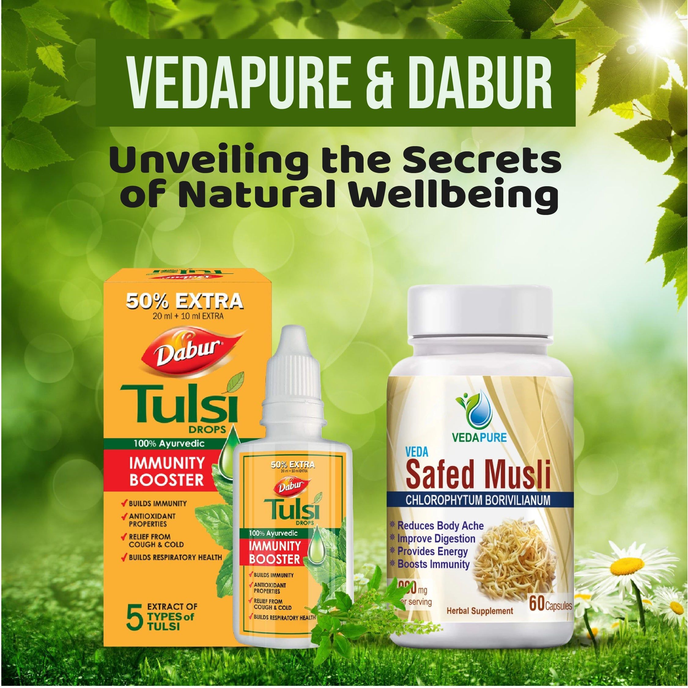??بناء صحة تنفسية جيدة: يمكن تحقيق الحماية من البرد والسعال والإنفلونزا باستخدام قطرات دابور تولسي التي تتكون من 5 مستخلصات نادرة من نبات التولسي. مسحوق مستخلص Safed Musli الطبيعي والعضوي من Vedapure هو معزز رائع للطاقة. هذا المكمل الغذائي للطاقة يجدد شباب الجسم ويزيد من كتلة العضلات. بمساعدة مسحوق Safed Musli من Vedapure، ستتمكن من الوصول إلى مستوى لياقة بدنية عالية وجسم قوي. سيساعدك على تحسين قوة الجسم وتغذية كل الأنسجة. استخدم مسحوق مستخلص Safed Musli من Vedapure واستمتع بجسمك الجذاب.