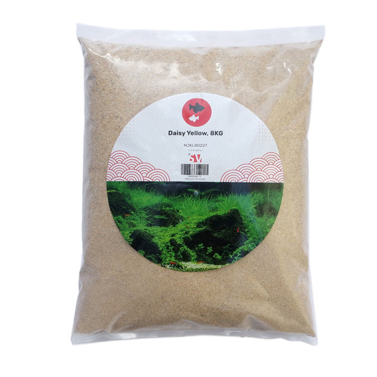 حصى "ديزي يلو" هو رمل طبيعي مناسب للاستخدام العام في أحواض السمك، كما أنه مناسب كحصى تزييني لأحواض السمك المزروعة بالنباتات.