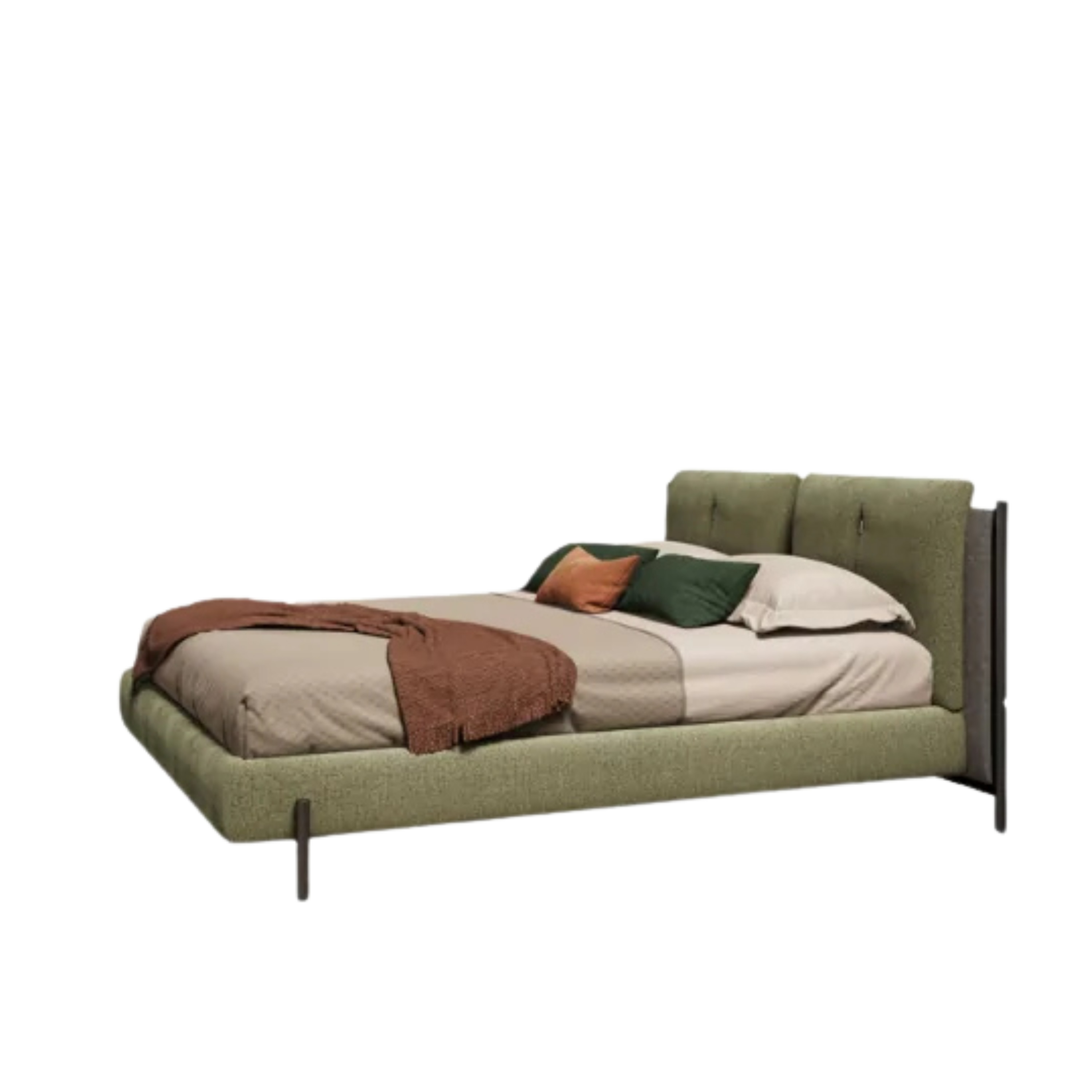 لو كان دانيال لحنًا، لكان موضوعًا يتناوب باستمرار بين النغمات القوية والأصوات الأكثر نعومة. تعود النغمات القوية إلى العناصر المعدنية التي تزين جوانب لوح الرأس، مما يضفي إحساسًا بالصلابة والتصميم على التصميم العام. تتكرر نفس القناعة في الأرجل التي توفرها التكوينات الموصى بها، والتي تخلق تناغمًا بصريًا ممتعًا. من ناحية أخرى، تذكرنا جميع الأجزاء المنجدة والمبطنة، مثل الجزء الخلفي من لوح الرأس والوسائد وإطار السرير النحيف، باللطف. على الرغم من أن دانيال يندرج ضمن تصميمات الأسرة ذات التصميم الأكثر بساطة، إلا أن هناك تفصيل واحد يستحق الذكر: الزر النحيف والطويل المميز.