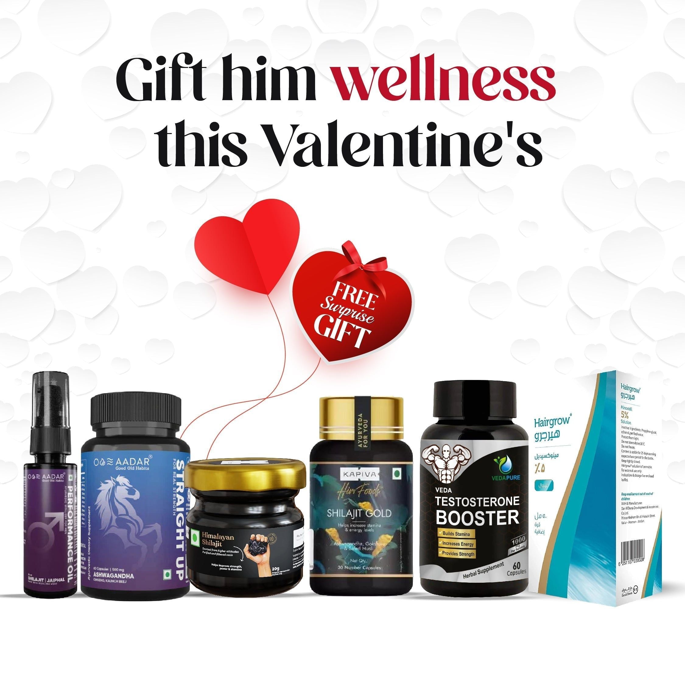 دار الدعوة Hairgrow 5٪ مينوكسيديل 50 مل + زيت AADAR Ayurvedic Performance Oil وكبسولات Straight Up لكسب قوة حقيقية وزيادة الطاقة | (60 كبسولة + 30 مل) + Kapiva Himalayan Shilajit 10 جم + كبسولات Shilajit Gold 30 Combo + Vedapure Testo