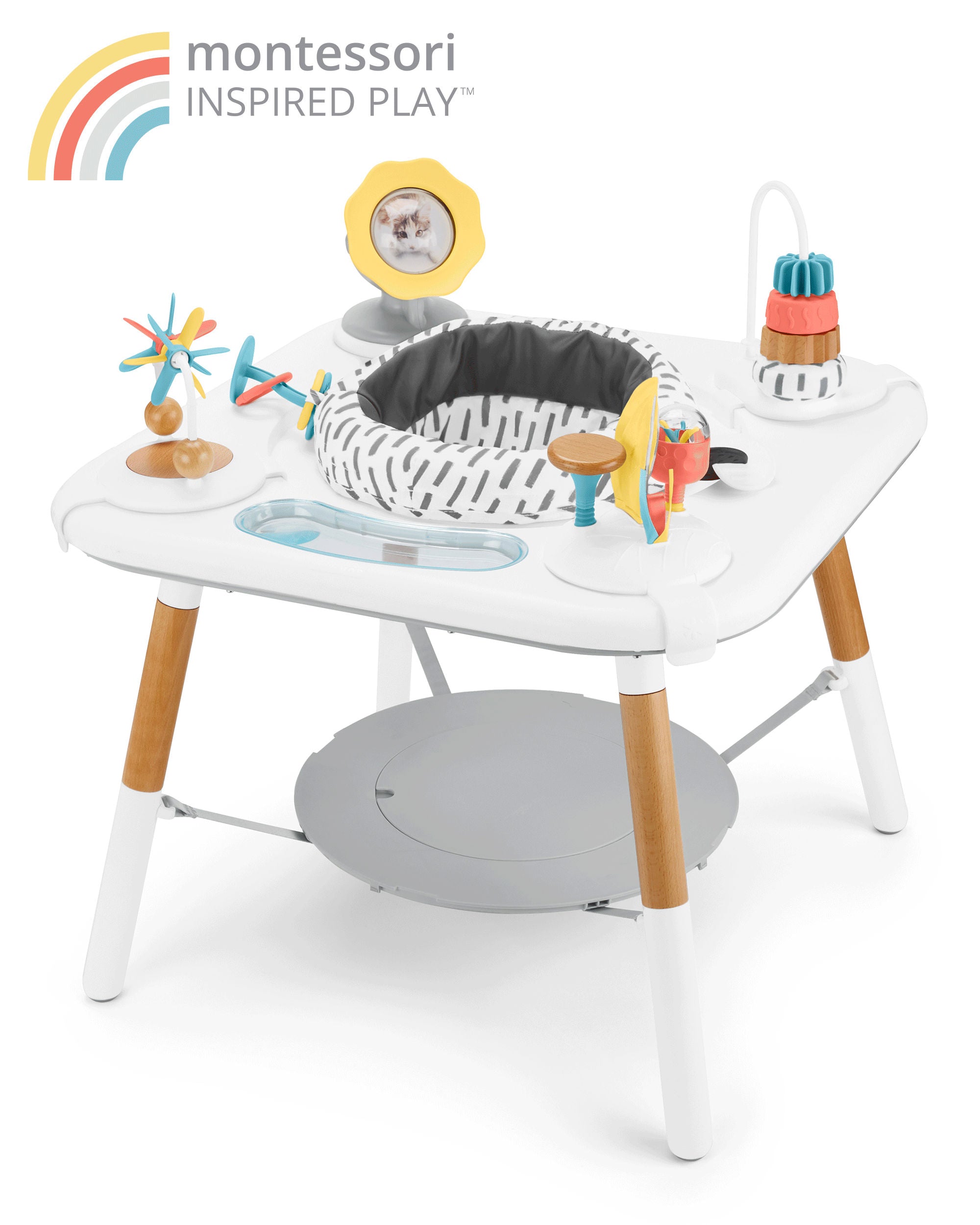 تم تصميم مركز أنشطة الأطفال لدينا بالتعاون مع طبيب أطفال، وهو يدعم نهج "الجسم كله" في اللعب والتعلم. سهل التجميع، مع ألعاب يمكن وضعها في أي مكان للطفل، ويتميز بمقعد يدور 360 درجة ويمكن تدويره وتمديده للقفز. تتيح نافذة الاكتشاف الفريدة للطفل رؤية قدميه أثناء اللعب لتعلم مبدأ السبب والنتيجة. مع نمو الطفل، يتحول مركز الأنشطة لدينا إلى طاولة أنشطة نظيفة ومتينة للتلوين واللعب وغير ذلك الكثير.