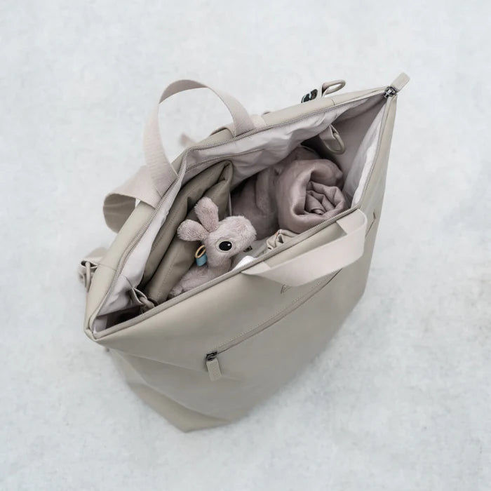 تتضمن حقيبة الظهر مفرش تغيير قابل للطي عملي بسطح مقاوم للماء وخطافين لعربة الأطفال. السحابات المقاومة للماء والسطح المقاوم للماء يجعلان حقيبة الظهر جاهزة لمواجهة تآكل الحياة اليومية. أحزمة الكتف والصدر القابلة للتعديل تجعل حقيبة الظهر مريحة للارتداء.