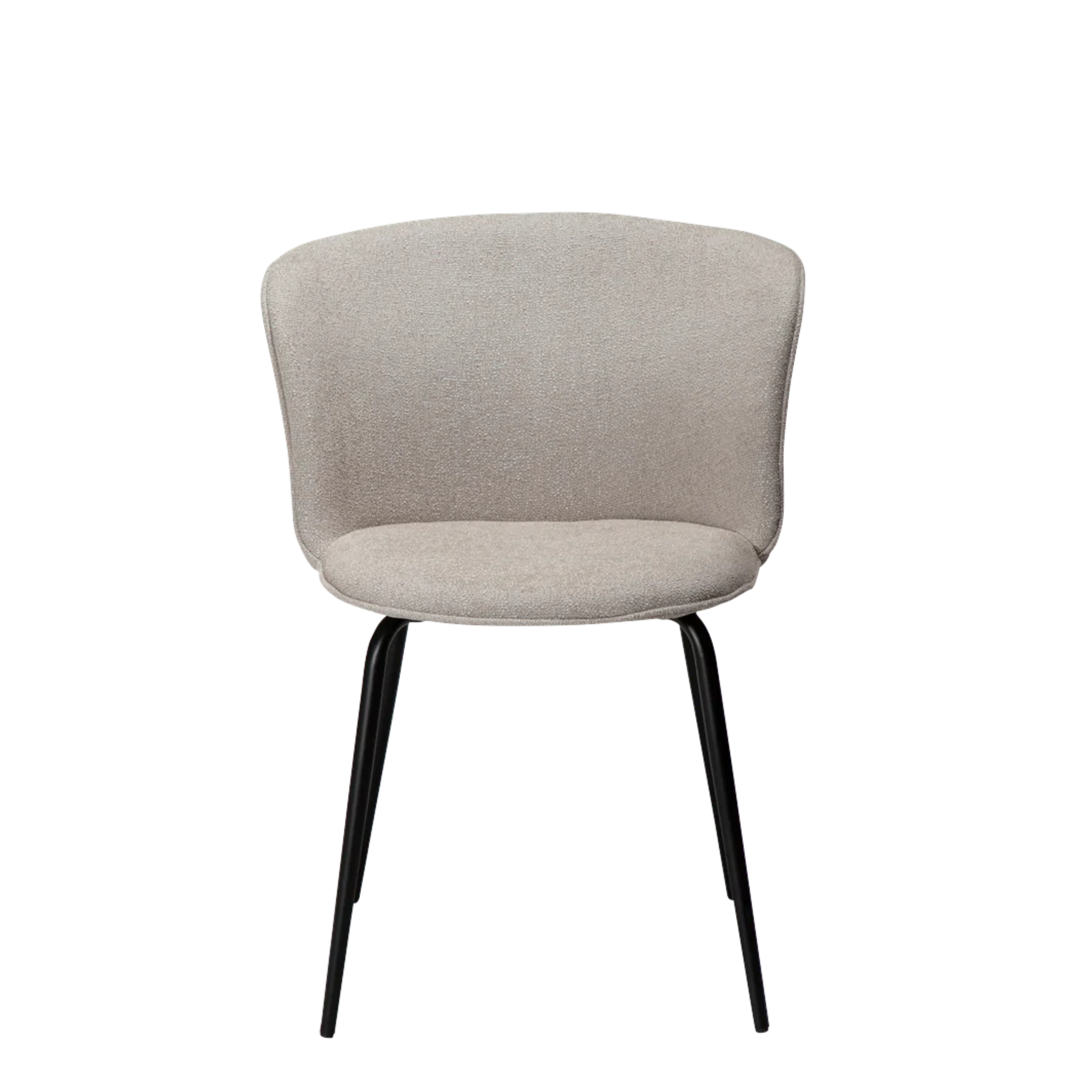 يتميز كرسي Eden بنسيج كشمير بوكل وأرجل معدنية سوداء. تضفي هذه القطعة الناعمة ملمسًا محايدًا فاخرًا مع تصميم عصري أنيق.