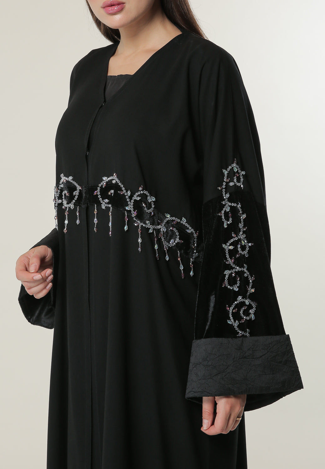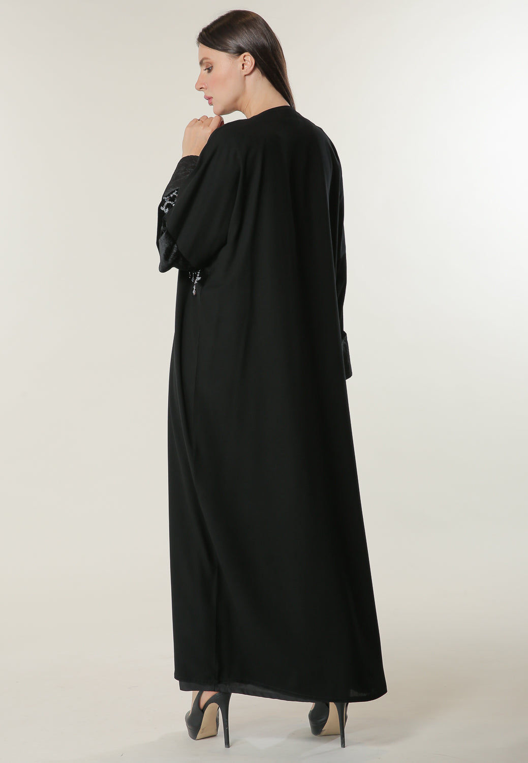 MOiSTREET عباءة سوداء مزخرفة بزخارف يدوية