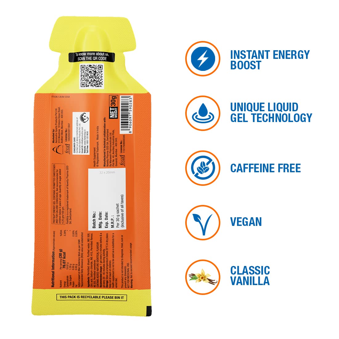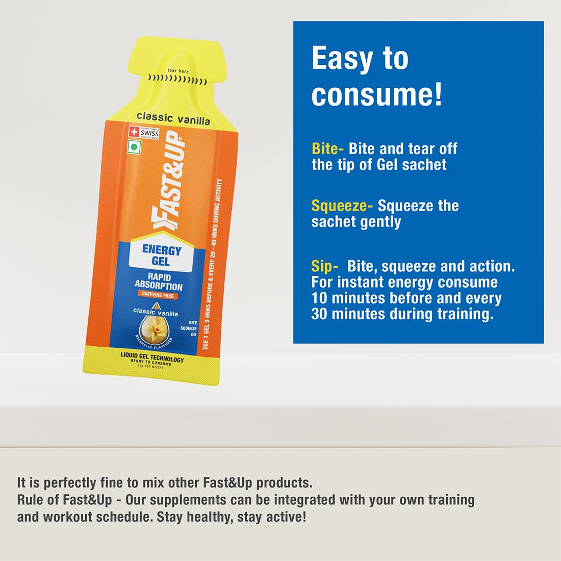 جل الطاقة Fast&up - طاقة فورية (عبوة من 5 قطع) - فانيليا كلاسيكية