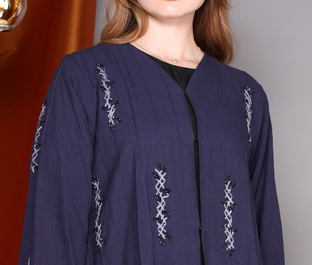 MOiSTREET عباية زرقاء بأكمام طويلة ومطرزة