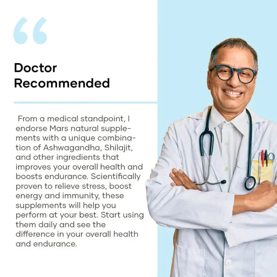 • المكونات الأيورفيدية: تحتوي تركيبتنا على أشواغاندا، شلاجيت، سافيد موسلي، جوكشورا، وشاتافار، وإجمالاً 10 أعشاب طبيعية.