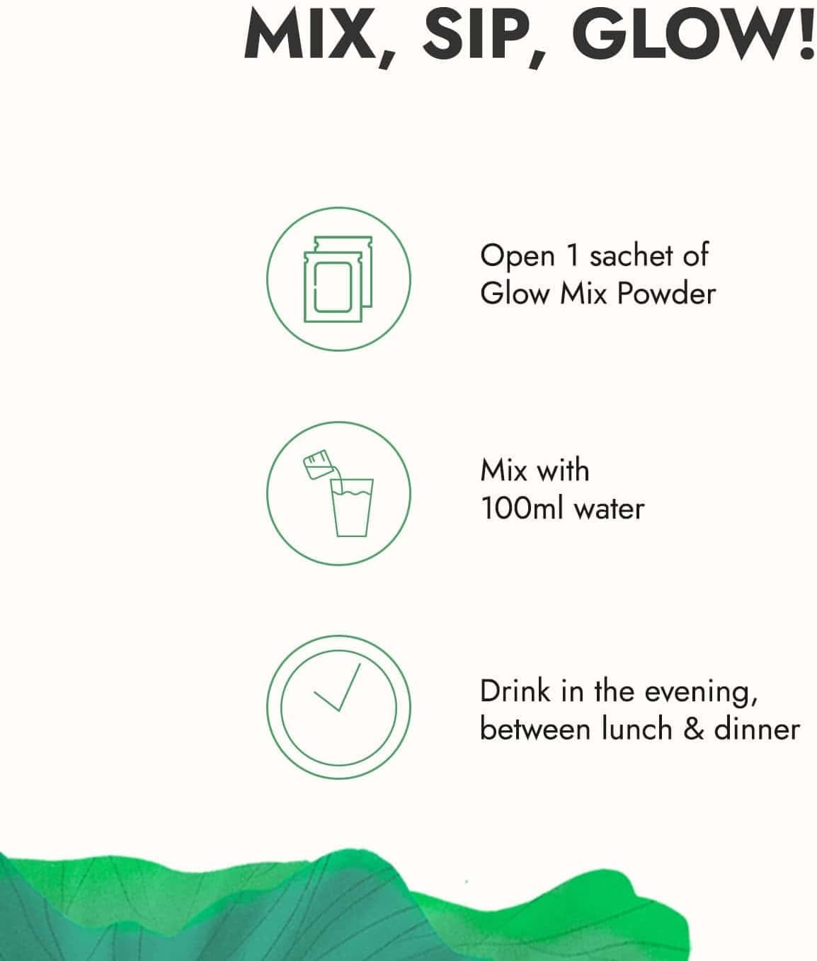 Elevate your skincare from within with Kapiva Glow Mix, a plant-based skincare supplement enriched with Pomegranate, Rose, Shatavari, and over 15 vitamins, including Vitamin C, A, and E. This all-in-one mix helps brighten your skin, boosts collagen and glutathione production, and fights hyperpigmentation and UV damage. With 30 convenient sachets, you can achieve a glowing complexion on the go, without the overload of skincare products.