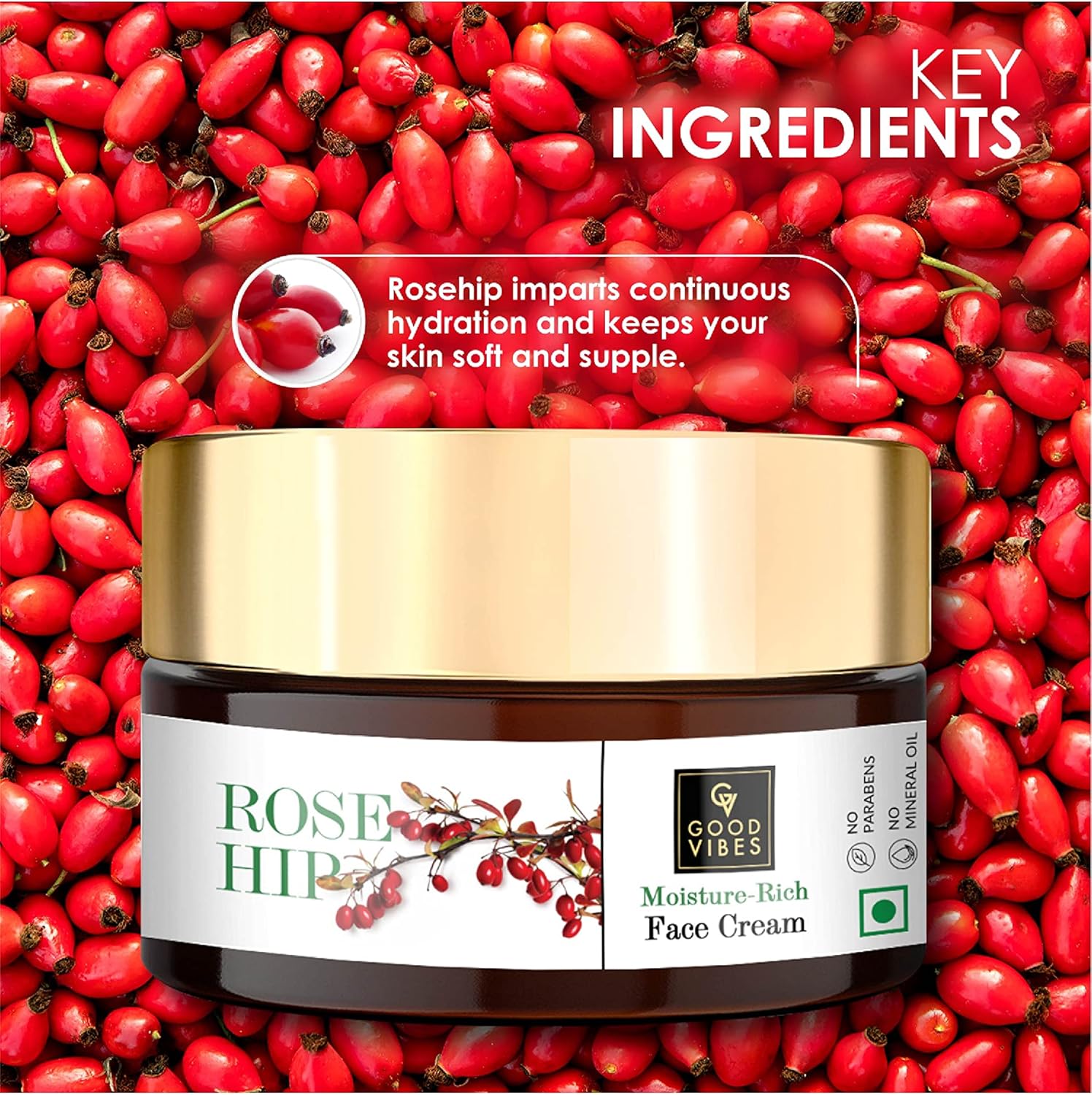 كريم الوجه المرطب غني بزيت ثمر الورد من Good Vibes 100 غرام