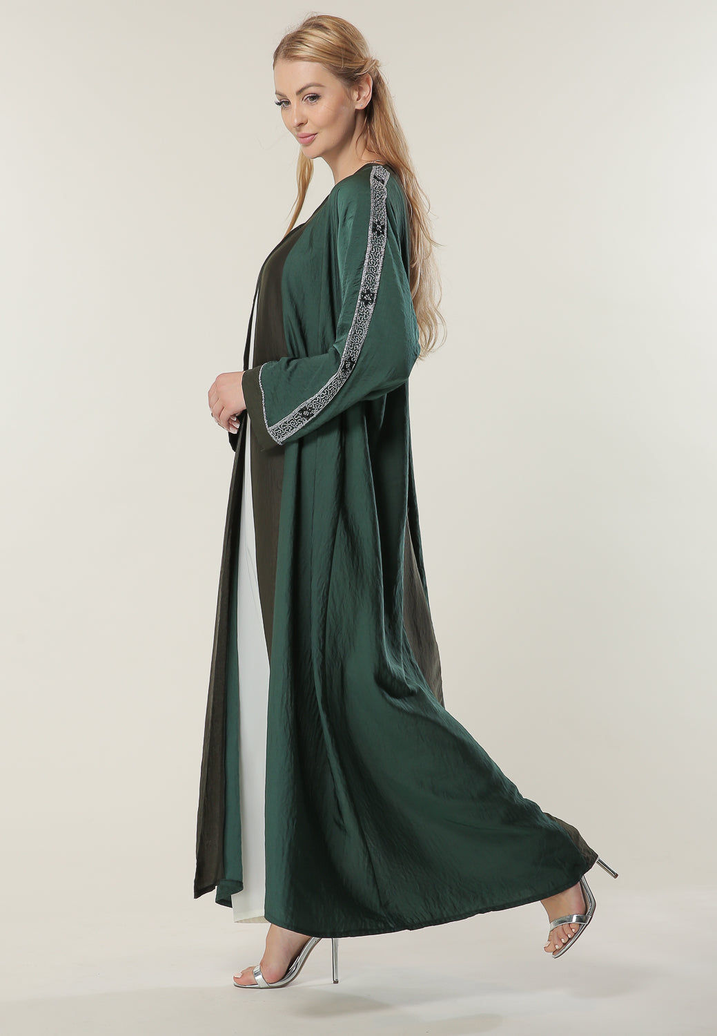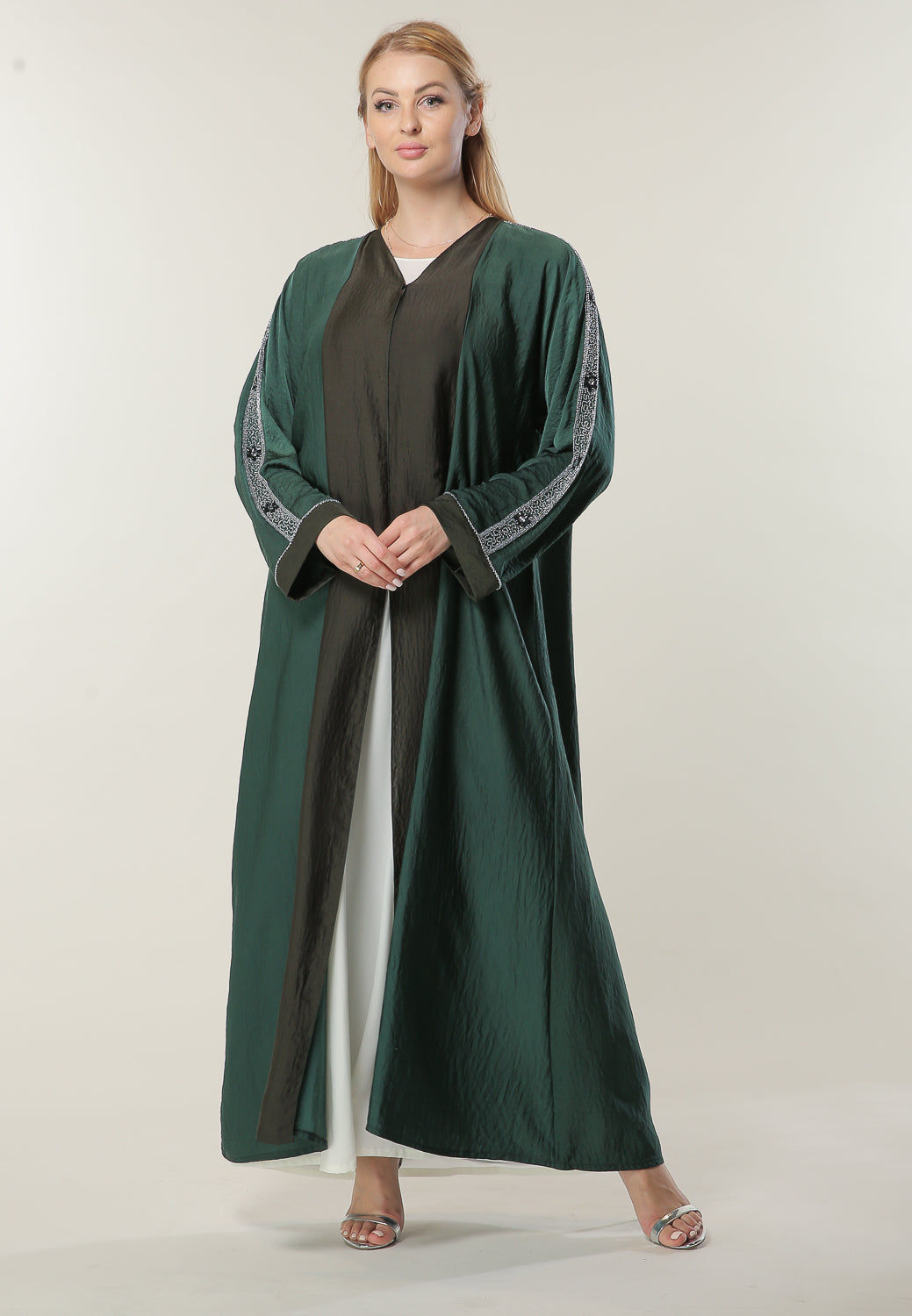 MOiSTREET عباءة خضراء بلونين مع زخارف يدوية