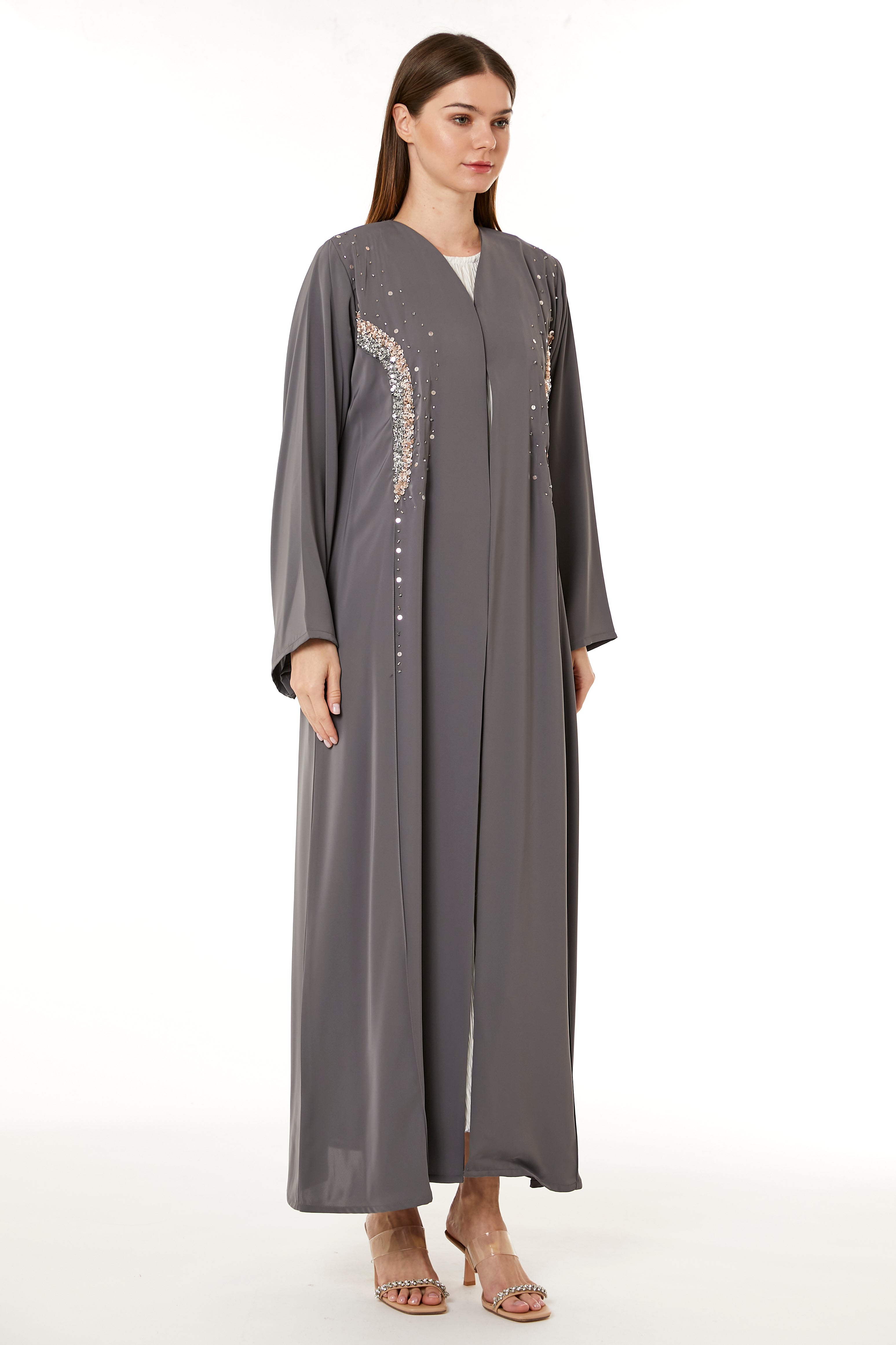 عباءة كورية رمادية مزينة يدوياً من Nida