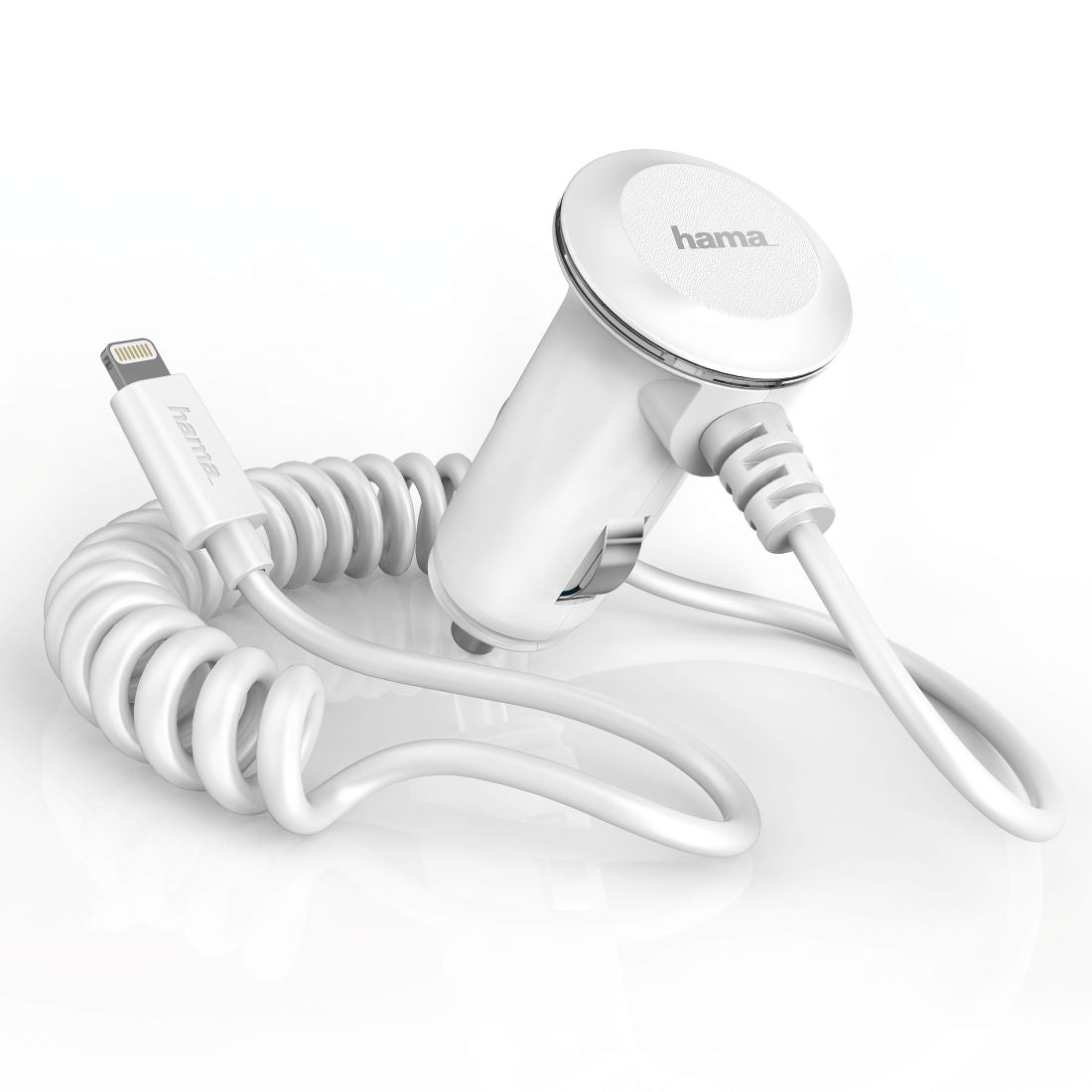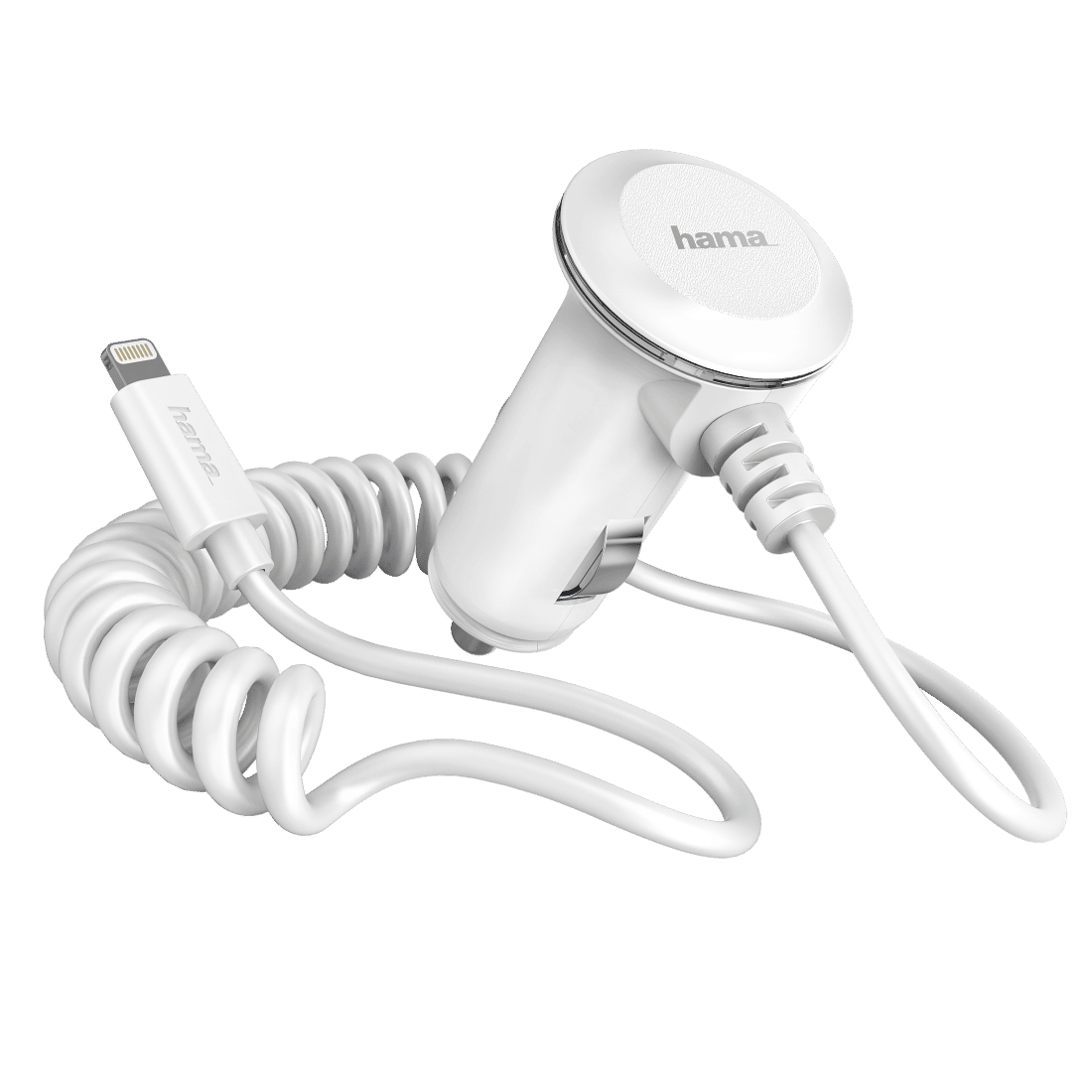 HHAMA 102096 كابل شحن للسيارة لـ iPhone 5/5s/5c/6/6 Plus/6s/6s Plus/SE، MFI، أبيض