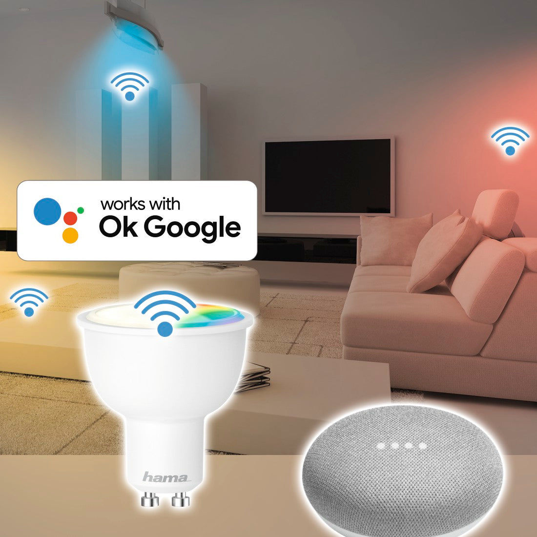 مصباح LED WiFi Hama176548، GU10، 4.5 وات، RGB، قابل للتعتيم