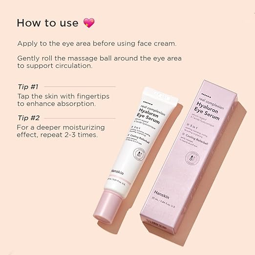 دلل عينيك بقوة الترطيب والتجديد مع سيروم العين Hanskin Hyaluron Eye Serum. أيقظ منطقة تحت العين واستمتع بمظهر منتعش وشبابي كل يوم!