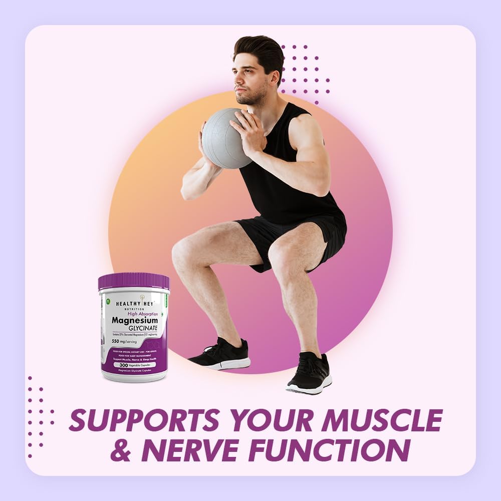HealthyHey Nutrition ماغنسيوم جليسينات عالي الامتصاص 550 مجم 300 كبسولة نباتية