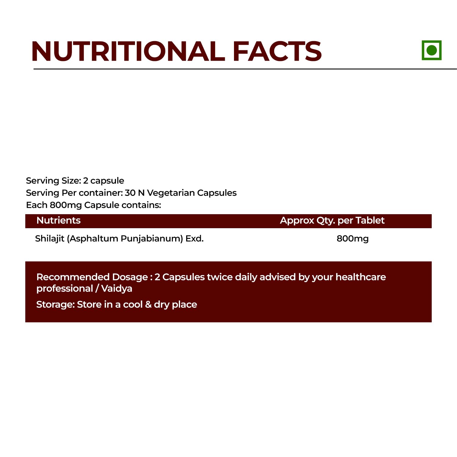 • الجرعة الموصى بها: كبسولة واحدة مرتين يوميًا مع الحليب بعد الوجبات أو حسب توصية الطبيب. آمن للاستخدام على المدى الطويل بالجرعات الموصى بها. للحصول على أفضل النتائج، استخدمه لمدة 3 أشهر على الأقل.