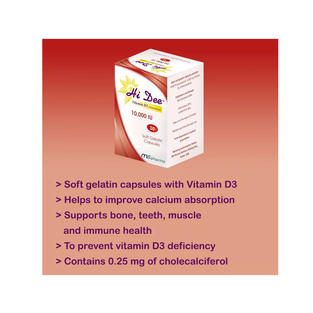 كبسولة HiDee-3 (10000 وحدة دولية) هي أفضل مكمل غذائي لفيتامين د، وتُعد الحل الشامل لصحة العظام والعضلات، ودعم جهاز المناعة، وتنظيم الحالة المزاجية، وصحة المفاصل. تحتوي كل كبسولة على جرعة قوية من فيتامين د (كوليكالسيفيرول)، مما يوفر فوائد شاملة لتعزيز صحتك العامة.