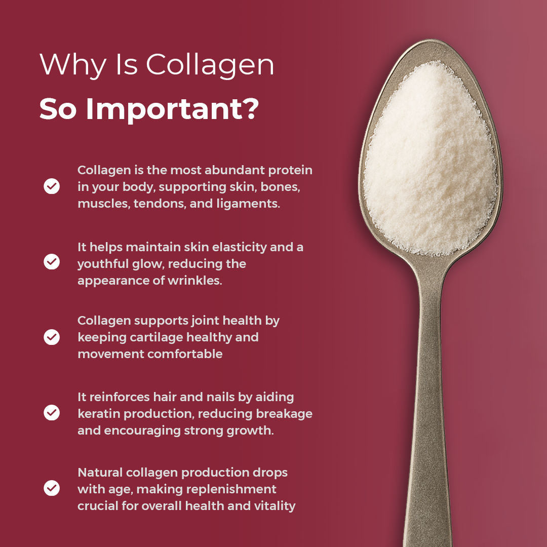 "؟ يتم تقسيم ببتيدات الكولاجين المُهضَّبة إلى وحدات أصغر حجماً من أجل امتصاص أفضل. وبمجرد تناولها، تساعد هذه الببتيدات على تجديد مخزون الجسم الطبيعي من الكولاجين، مما يدعم صحة البشرة والشعر والأظافر والمفاصل والعظام. ويساعد فيتامين C في تكوين الكولاجين، بينما يوفر حمض الهيالورونيك والبيوتين دعماً إضافياً لترطيب البشرة وصحة الشعر والأظافر.