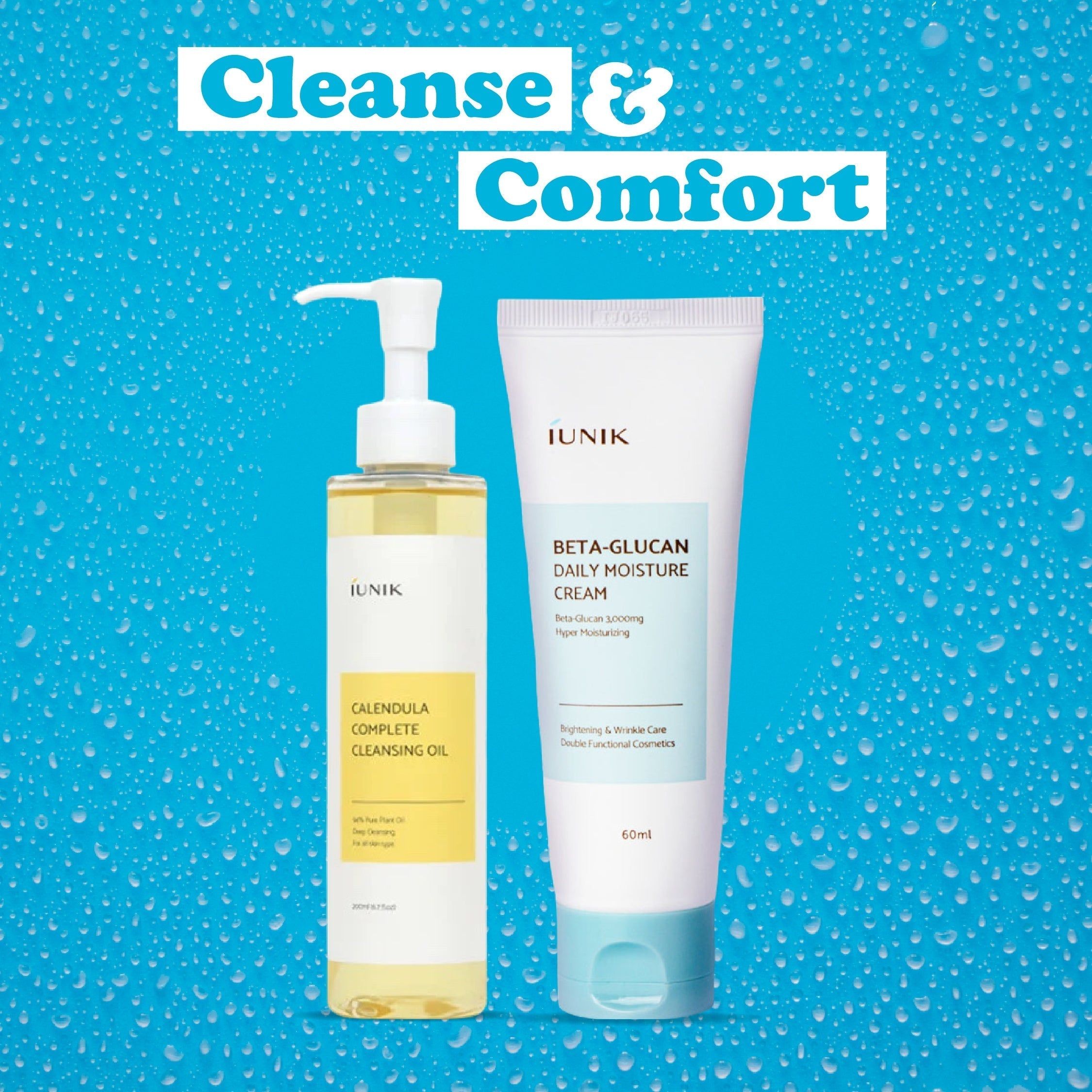 زيت التنظيف الكامل iUNIK Calendula 200 مل وكريم الترطيب اليومي Iunik Beta Glucan 60 مل