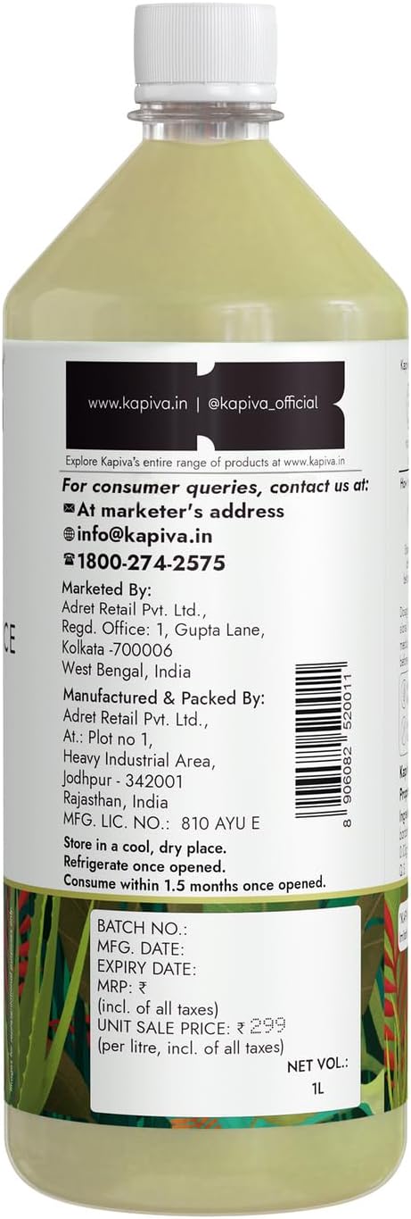 عصير الصبار + عصير القمح من Kapiva | مزيج أيورفيدا لتحسين الهضم والعافية العامة والعناية بالبشرة (1 لتر + 1 لتر) 1 لتر (عبوة من 2)