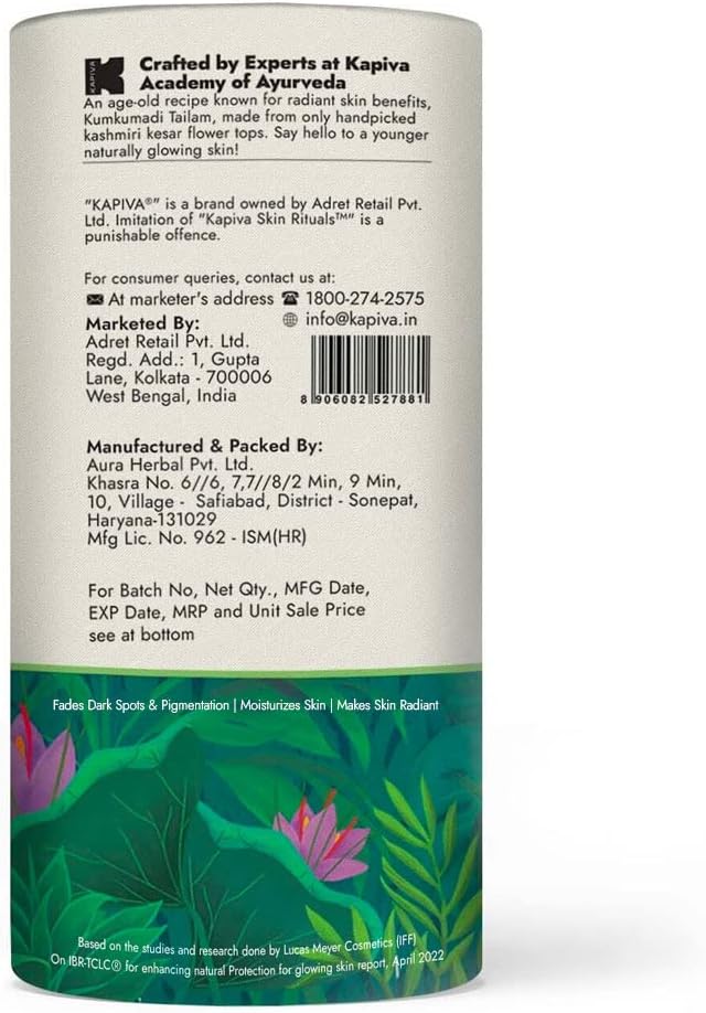زيت الوجه Kapiva Kumkumadi Glow (30 مل) | لبشرة مشرقة | يساعد على تقليل البقع الداكنة والتصبغات | Kumkumadi Tailam