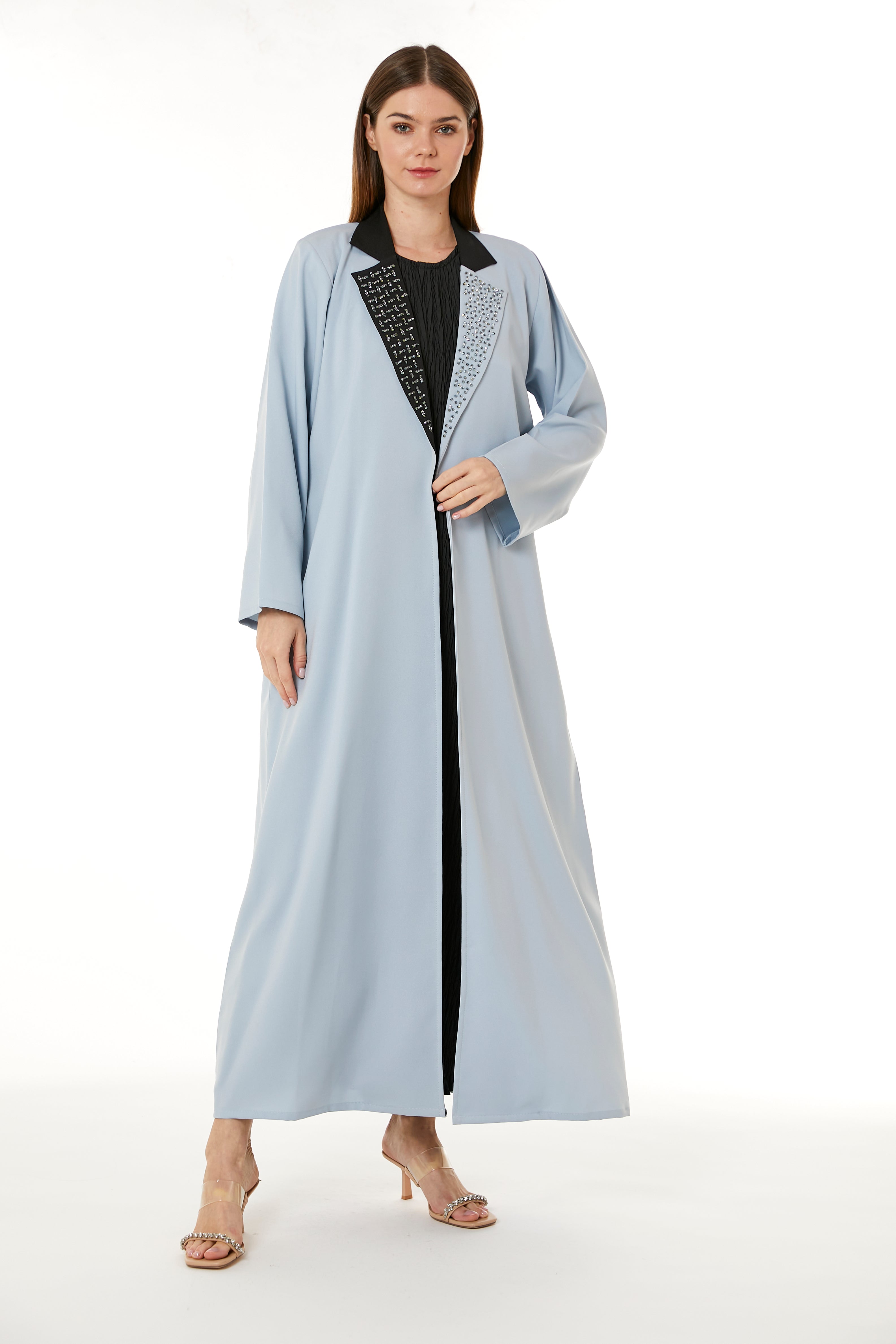 MOiSTREET أزرق فاتح عباية إندونيسية من الكريب مزينة يدوياً