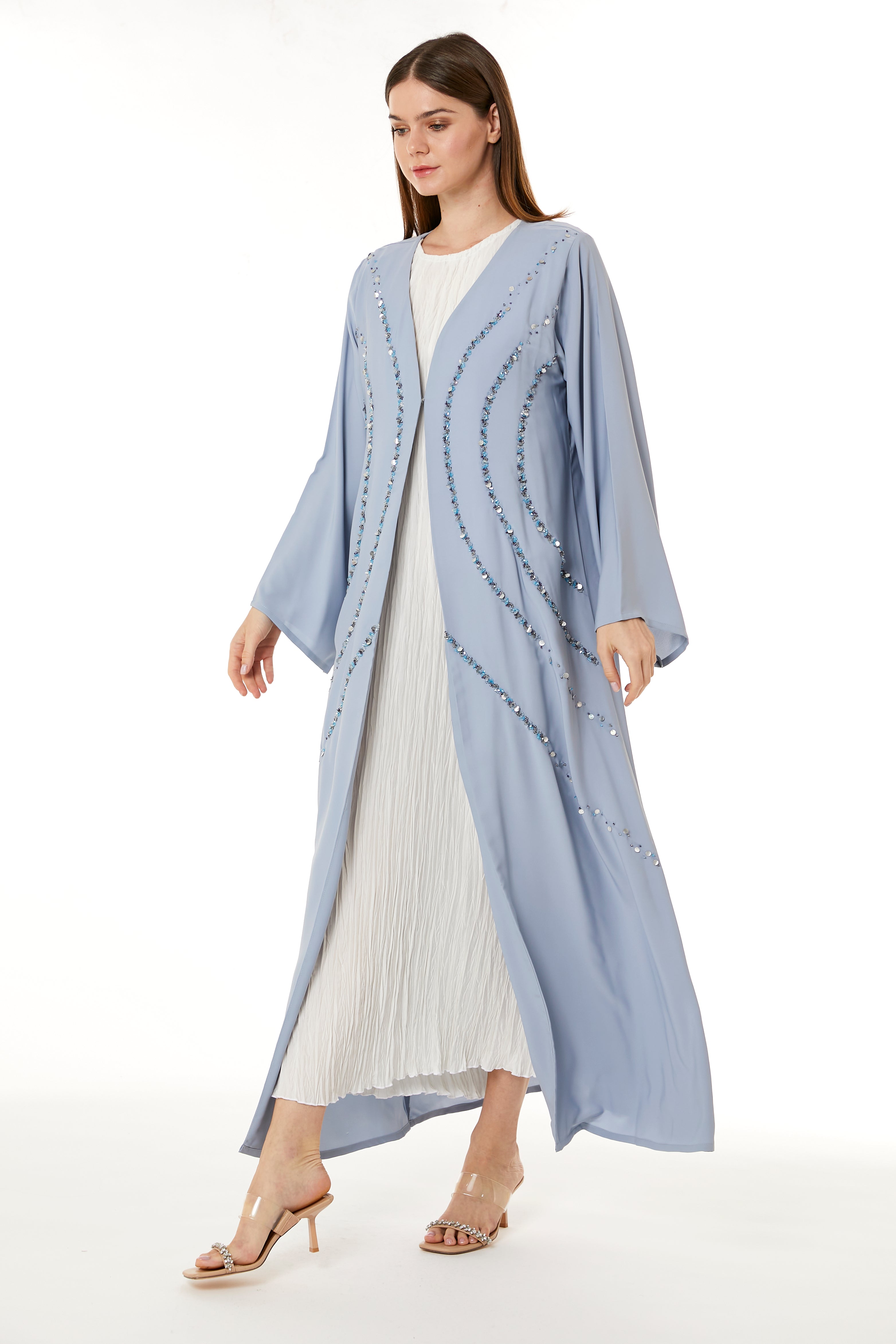 عباءة زرقاء فاتحة من الكريب الإندونيسي مزينة يدوياً