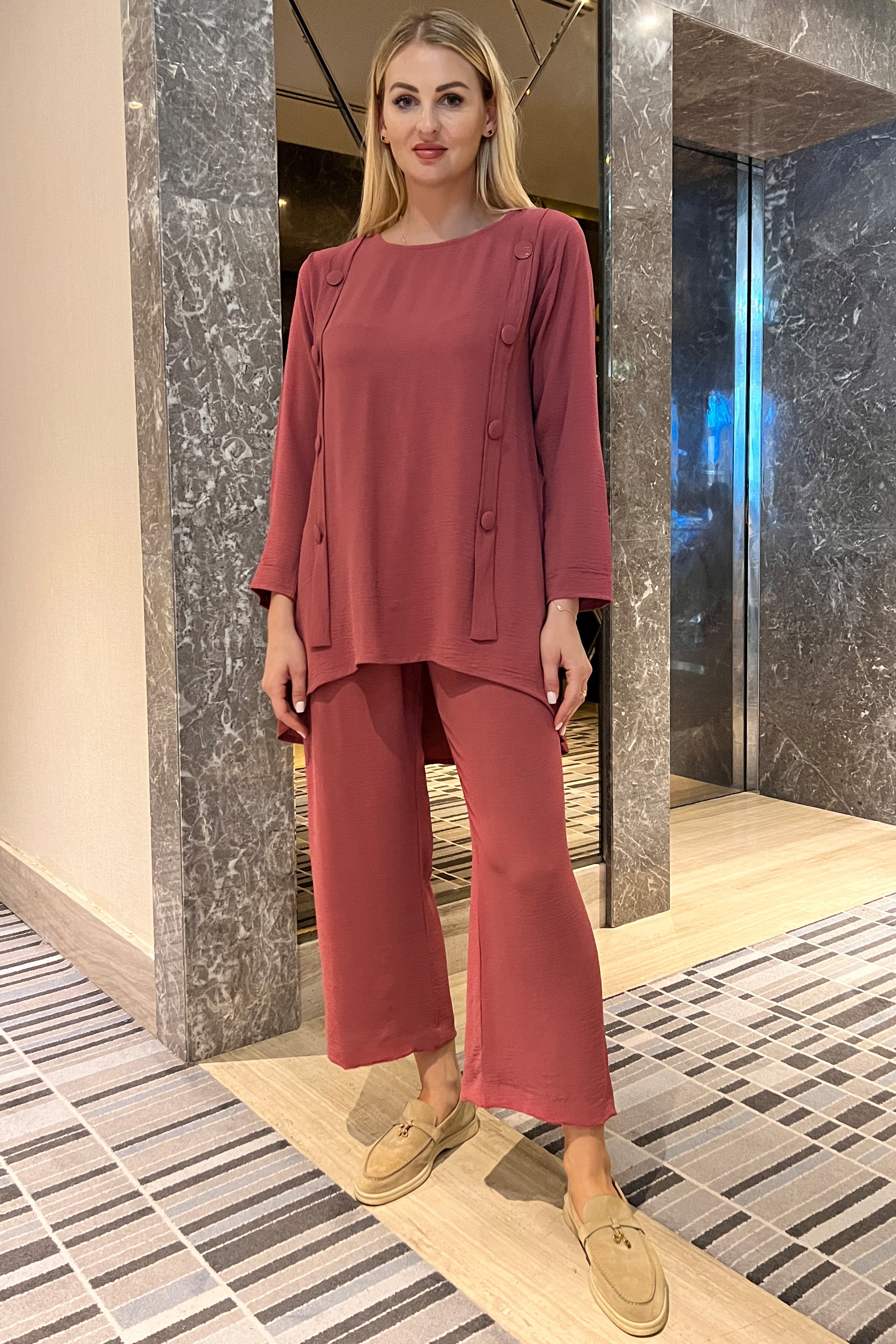 MOiSTREET طقم قميص وبنطال من قماش CEY بلون كستنائي فاتح
